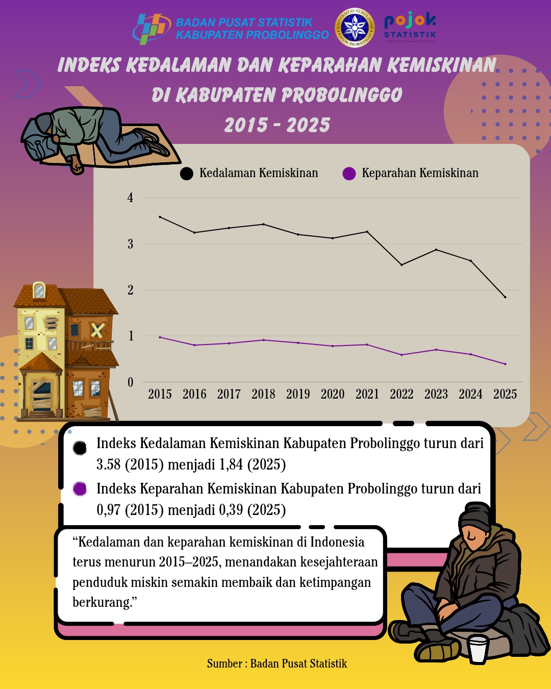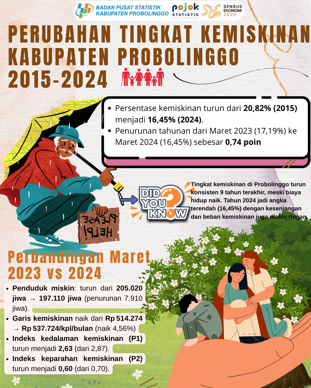 Dalam kurun waktu sembilan tahun terakhir, tingkat kemiskinan di Kabupaten Probolinggo terus menurun secara konsisten. Dari angka 20,82% pada tahun 2015, kini turun menjadi 16,45%...