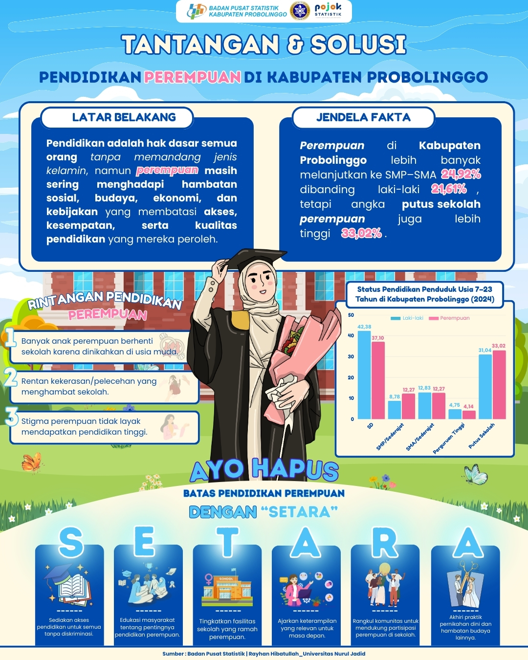 Pendidikan adalah hak dasar semua orang tanpa memandang jenis kelamin, namun perempuan masih sering menghadapi hambatan sosial, budaya, ekonomi, dan kebijakan yang membatasi akses, kesempatan,...