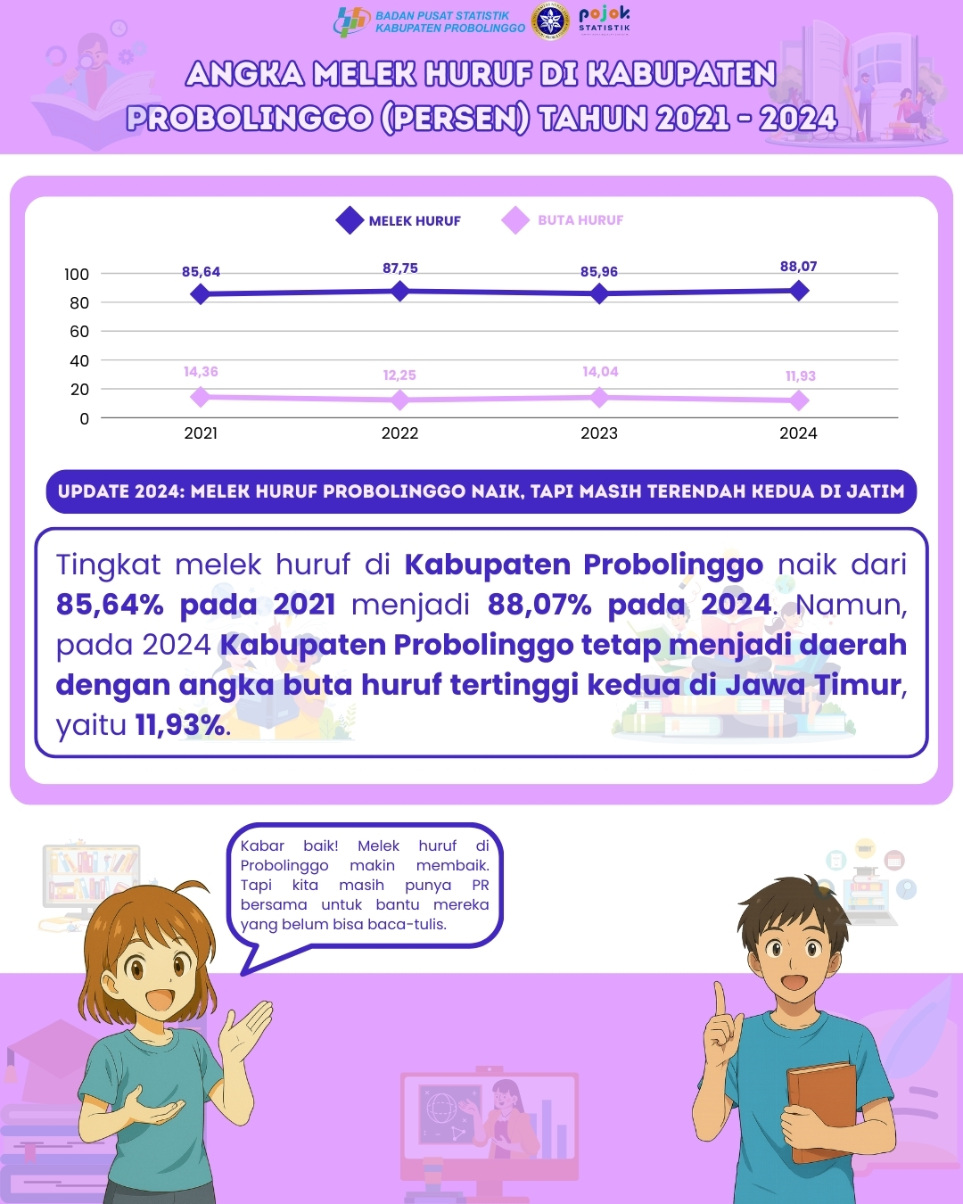 Pemberantasan buta huruf memerlukan aksi nyata, kolaborasi, dan inovasi pendidikan yang berkelanjutan demi mewujudkan masyarakat yang cerdas aksara. Di Kabupaten Probolinggo, persentase angka melek huruf...