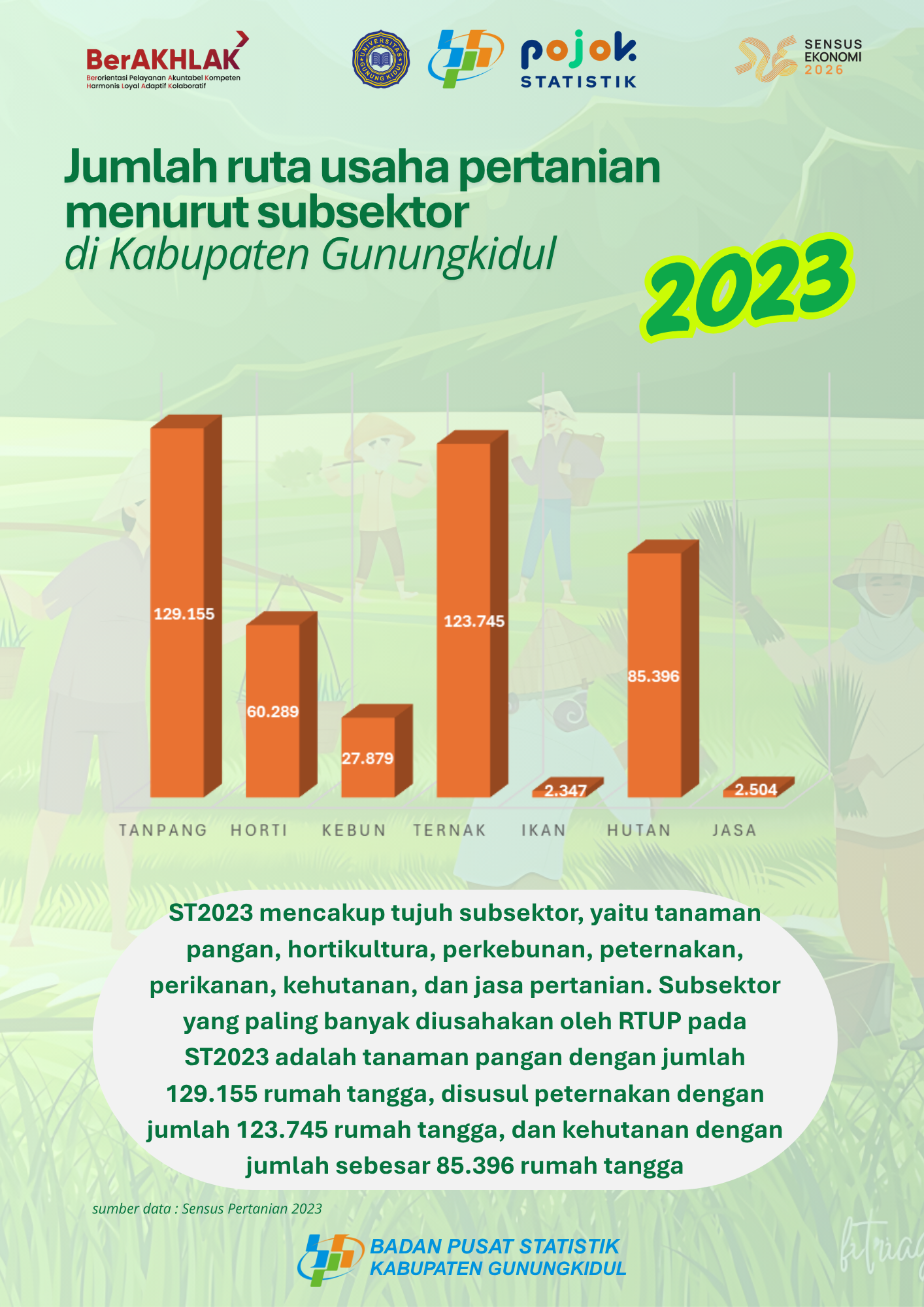 Jumlah Rumah Tangga Usaha Pertanian menurut Subsektor di Kabupaten Gunungkidul Hasil ST2023
