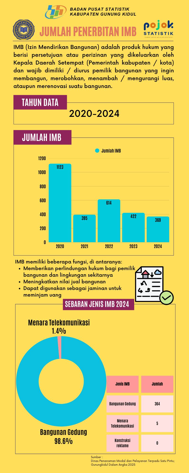 Infografis data tentang penerbitan Izin Mendirikan Bangunan yang dikeluarkan oleh Dinas Penanaman Modal dan Pelayanan Terpadu Satu Pintu Tahun 2024