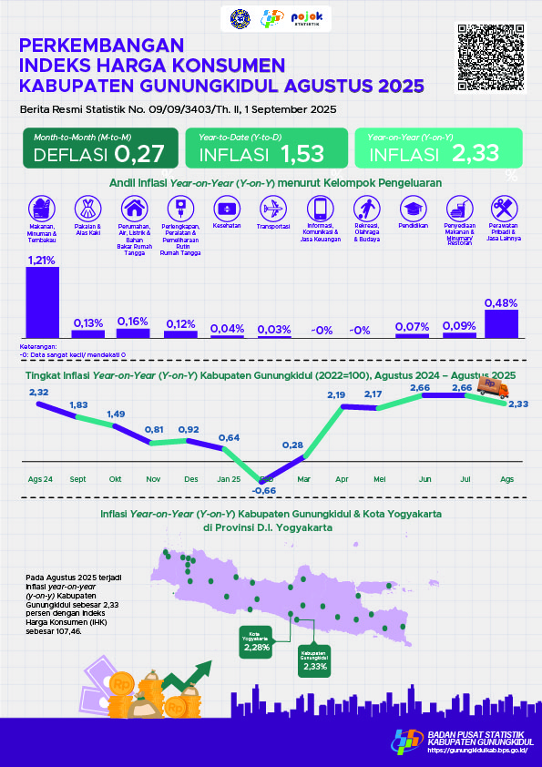 Perkembangan Indeks Harga Konsumen Kabupaten Gunungkidul Agustus 2025