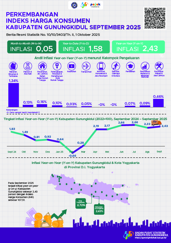Perkembangan Indeks Harga Konsumen Kabupaten Gunungkidul September 2025