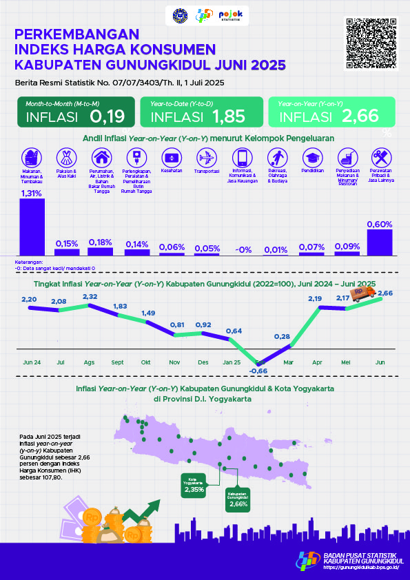 Perkembangan Indeks Harga Konsumen Kabupaten Gunungkidul Juni 2025