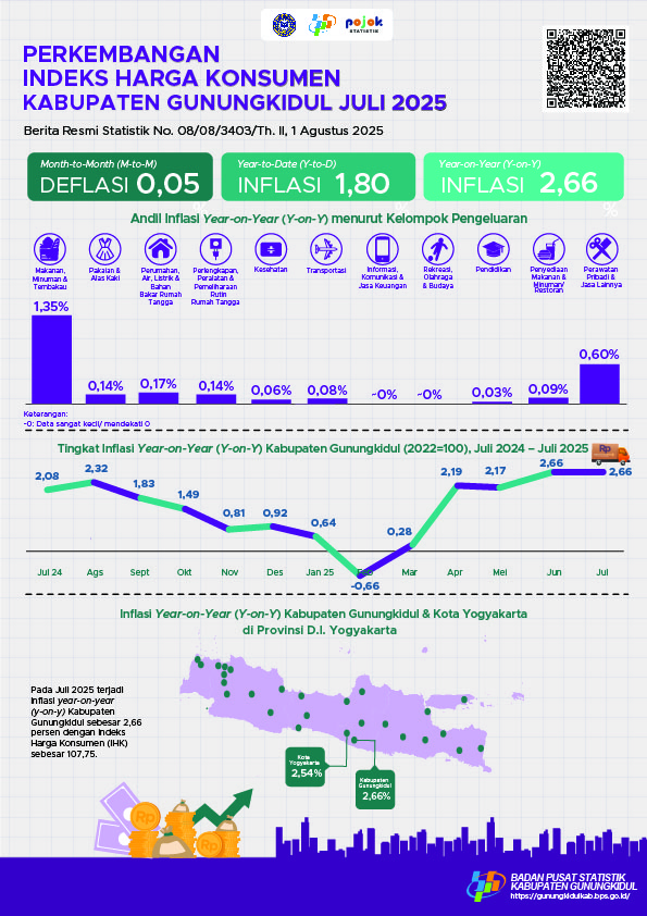 Perkembangan Indeks Harga Konsumen Kabupaten Gunungkidul Juli 2025