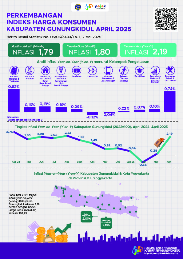 Memberikan informasi perkembangan IHK Kabupaten Gunungkidul pada bulan April 2025.