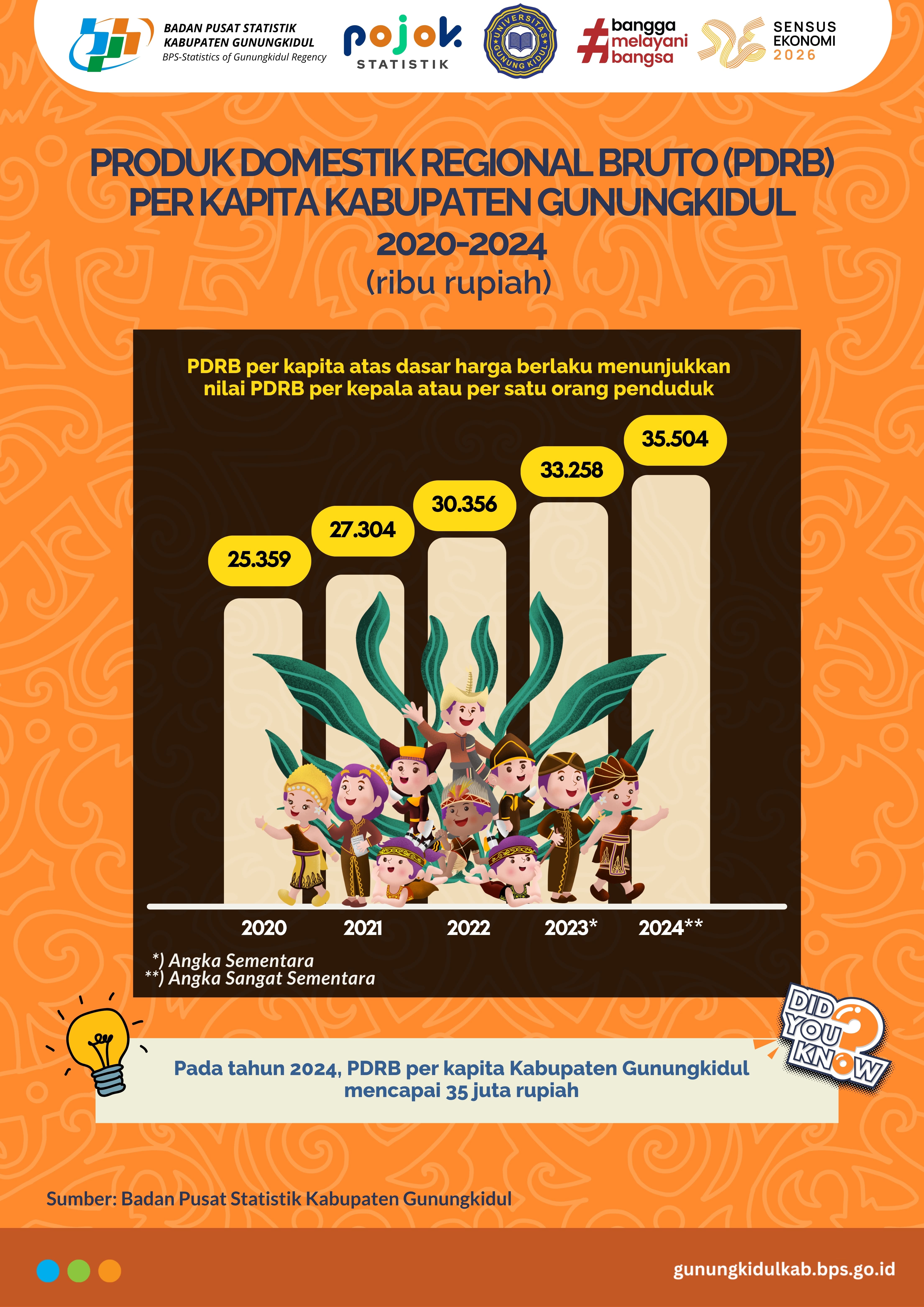 PDRB Perkapita Kabupaten Gunungkidul pada Tahun 2024 mencapai 35 juta rupiah