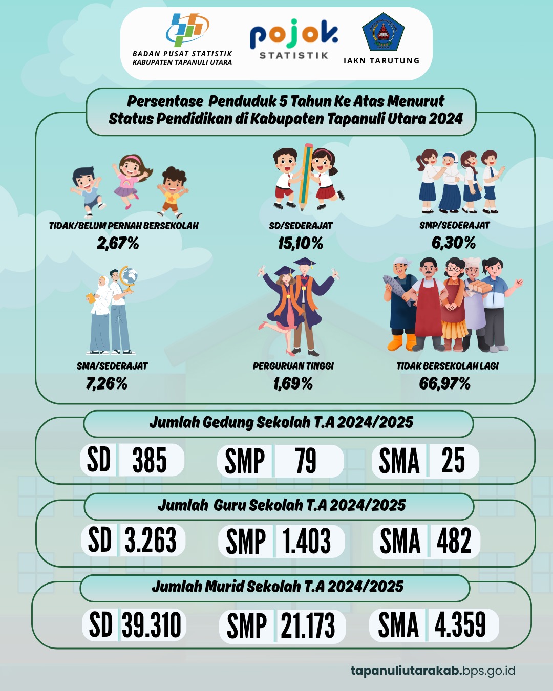 Infografis statistik pendidikan anak usia 5 tahun ke atas menurut status pendidikan