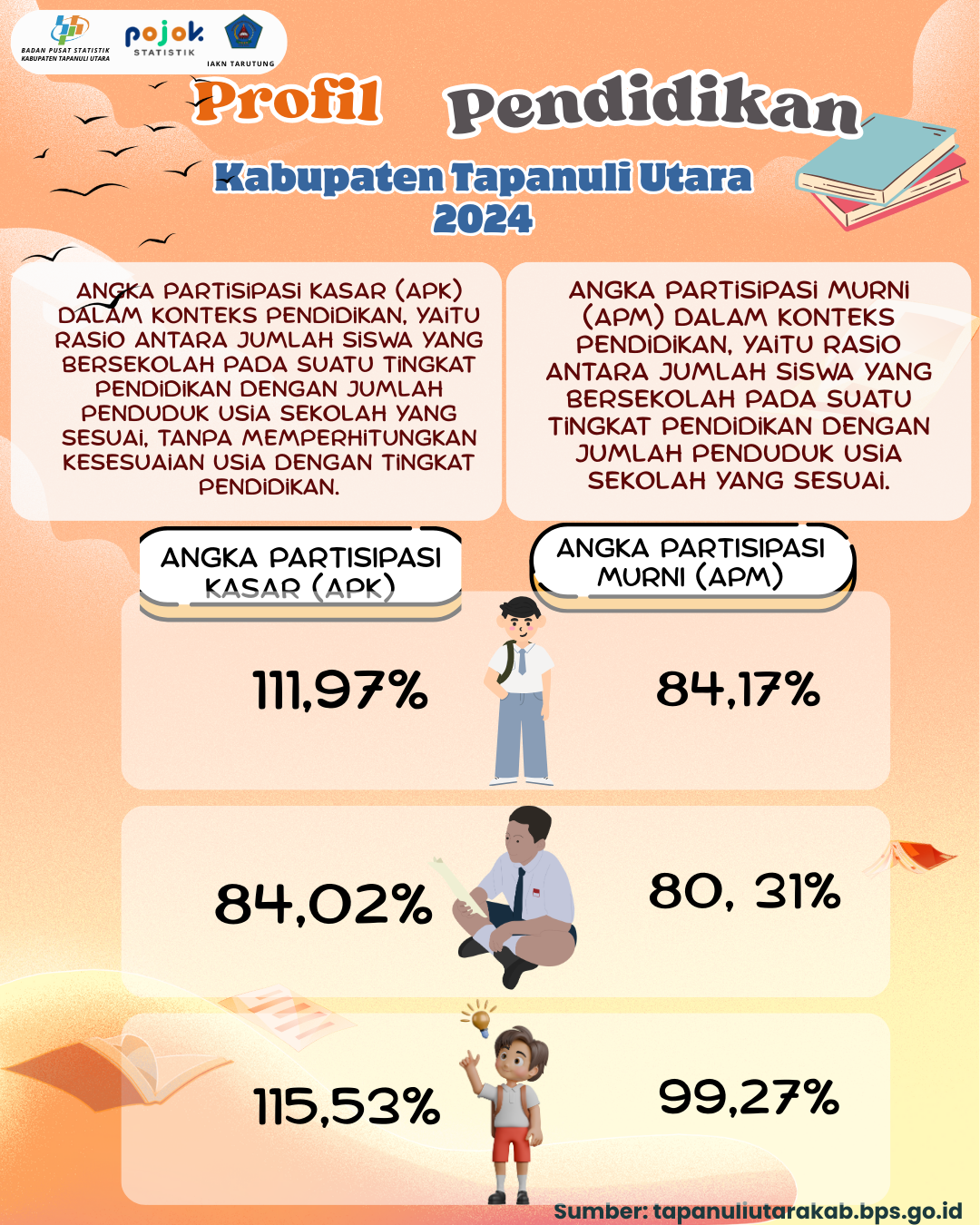Infografis profil pendidikan anak usia 5 tahun ke atas menurut status pendidikan