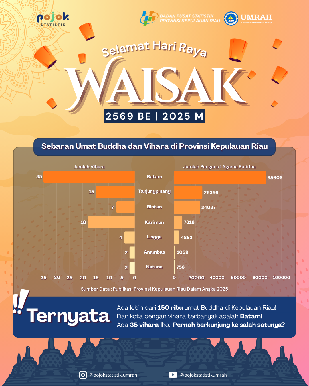 Poster Ucapan Hari Raya Waisak 2569 BE/2025 M (Sebaran Umat Buddha dan Vihara di Provinsi Kepulauan Riau)