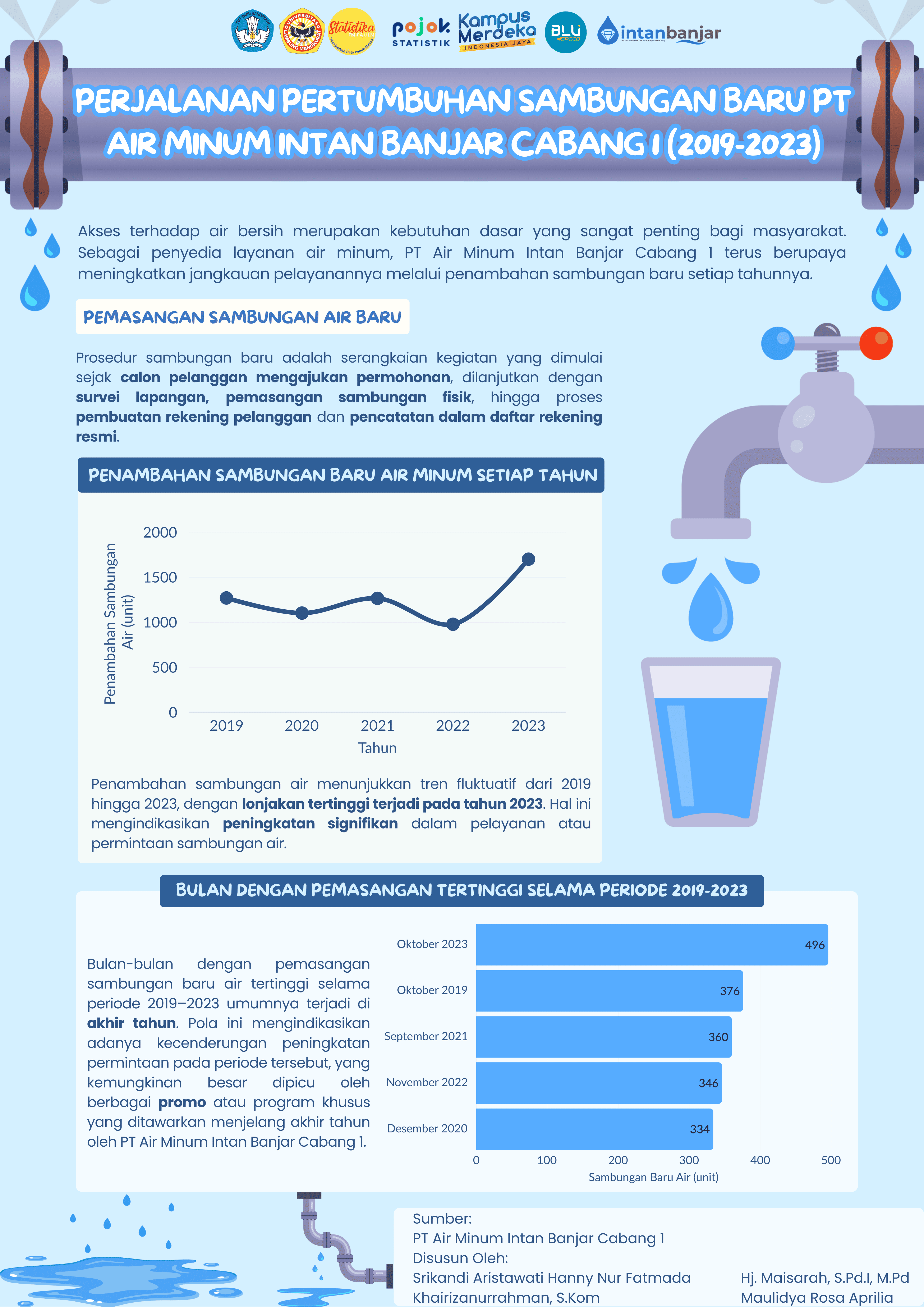Infografis ini menginformasikan mengenai pertumbuhan sambungan baru air minum oleh PT Air Minum Intan Banjar Cabang 1 selama periode 2019–2023. Akses terhadap air bersih merupakan...