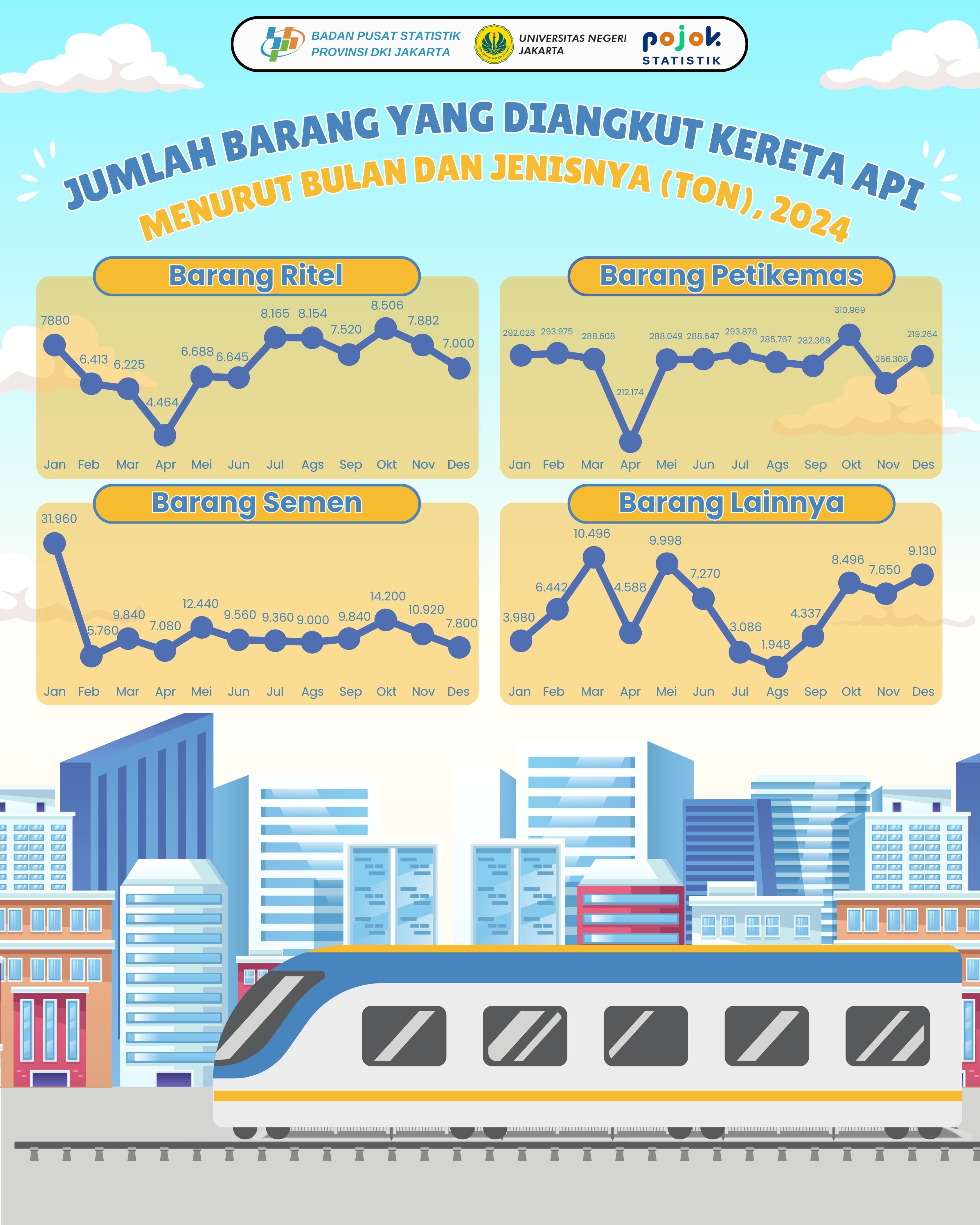🚆📦 Angkutan Barang via Kereta Api DKI Jakarta 2024: Mana yang Paling Banyak? Sepanjang tahun 2024, berbagai jenis barang diangkut menggunakan kereta api. Yuk intip...