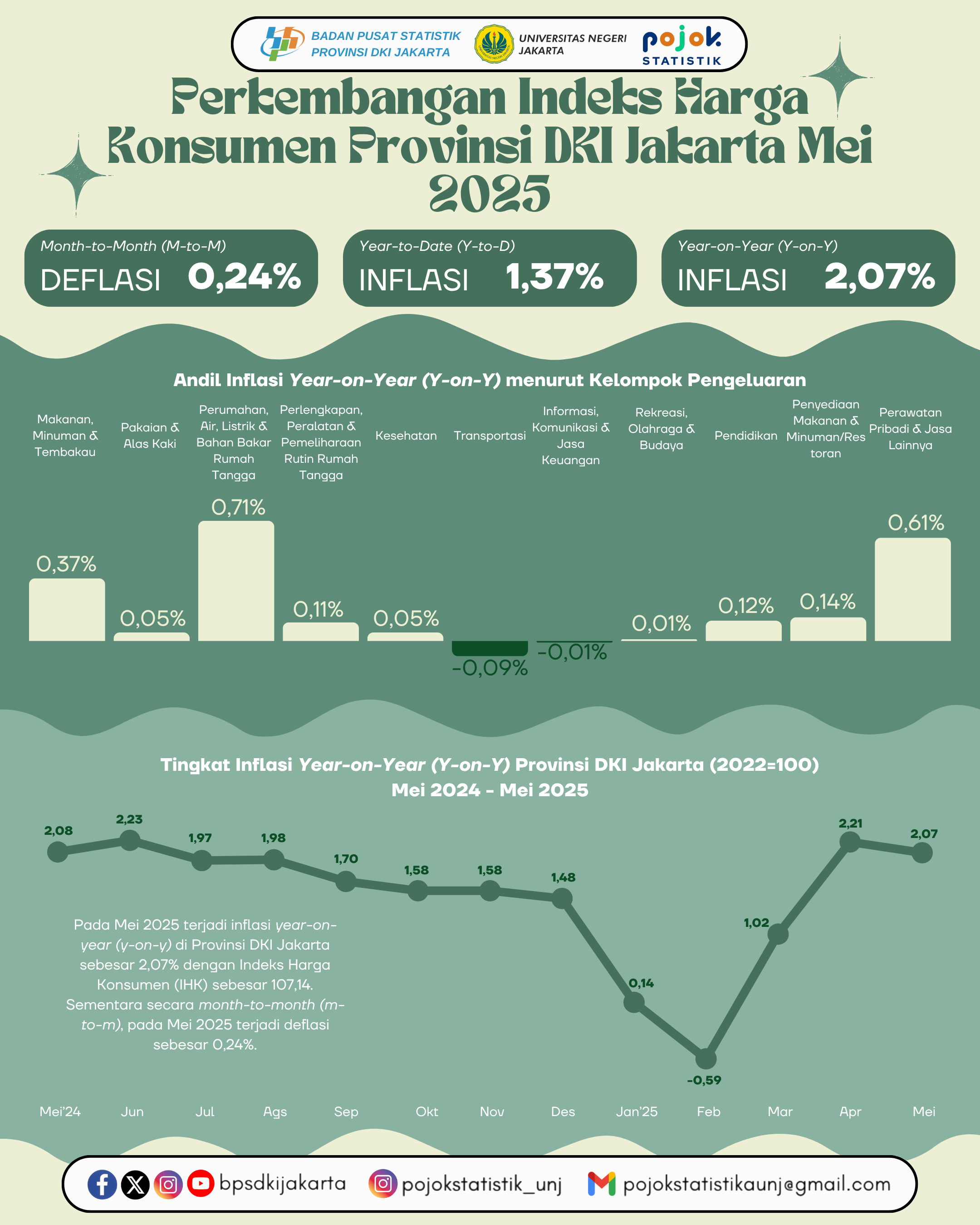 📊✨ Perkembangan Indeks Harga Konsumen Provinsi DKI Jakarta – Mei 2025 ✨📊 Pada Mei 2025, Provinsi DKI Jakarta mengalami deflasi bulanan (m-to-m) sebesar 0,24%, namun...