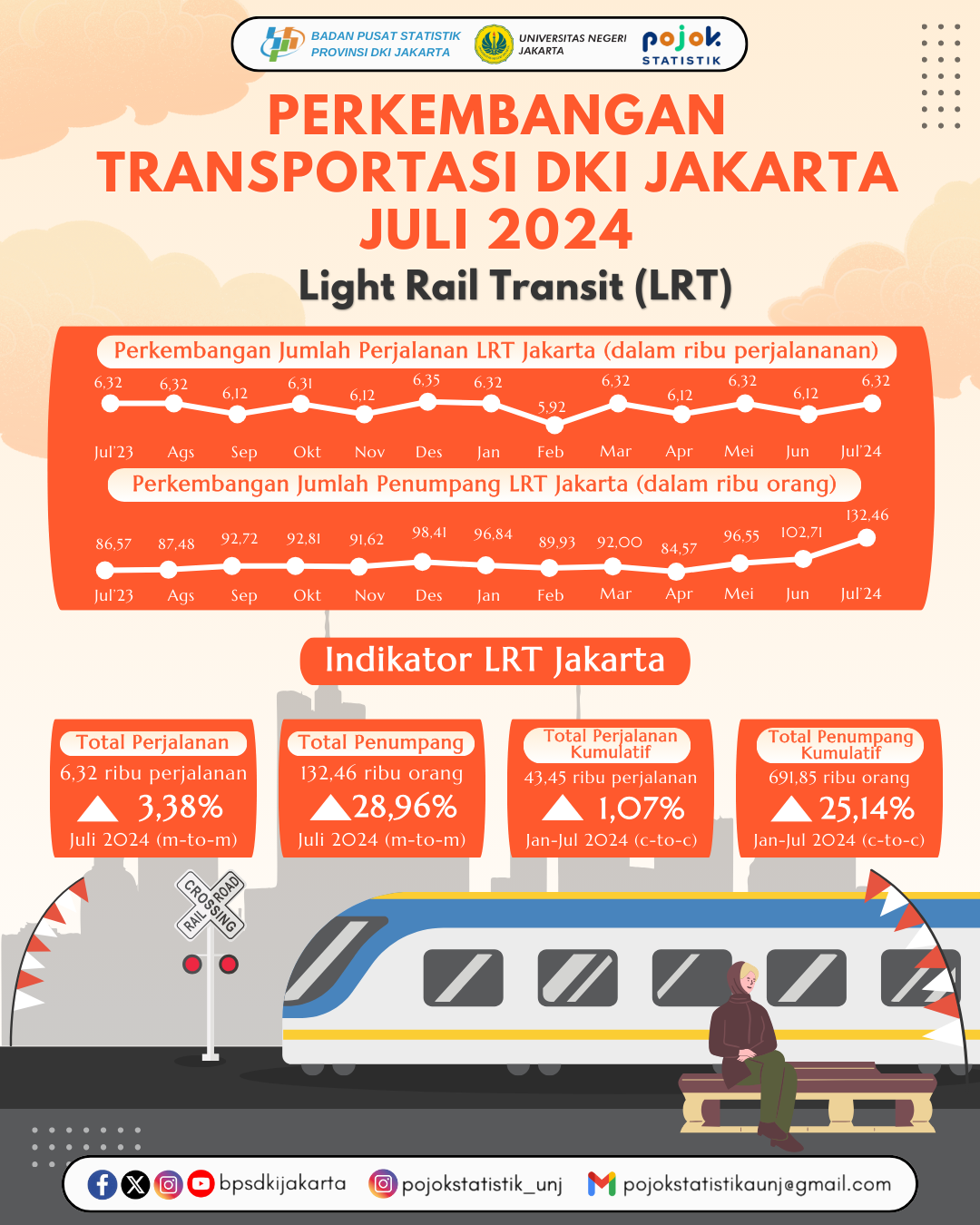 🚝 Penumpang LRT Melejit Tajam di Bulan Juli! Jumlah penumpang LRT Jakarta melonjak hingga 132,46 ribu orang di Juli 2024, naik drastis 28,96% dibanding bulan...