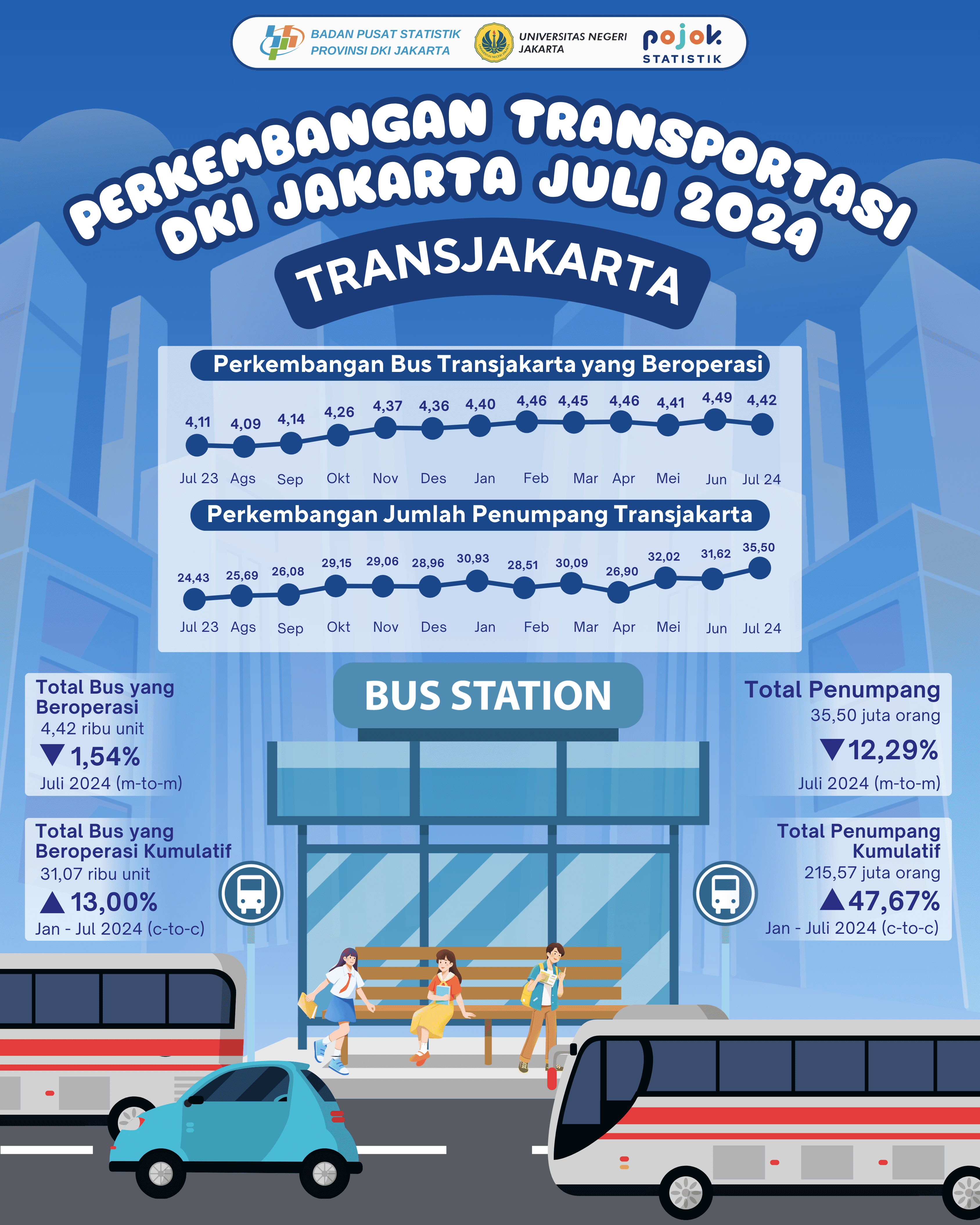 🚍 Turun di Juli, Tapi Tetap Ngebut! Meski jumlah penumpang Transjakarta turun 12,29% dan bus yang beroperasi juga menurun 1,54% dibanding bulan lalu, Transjakarta tetap...