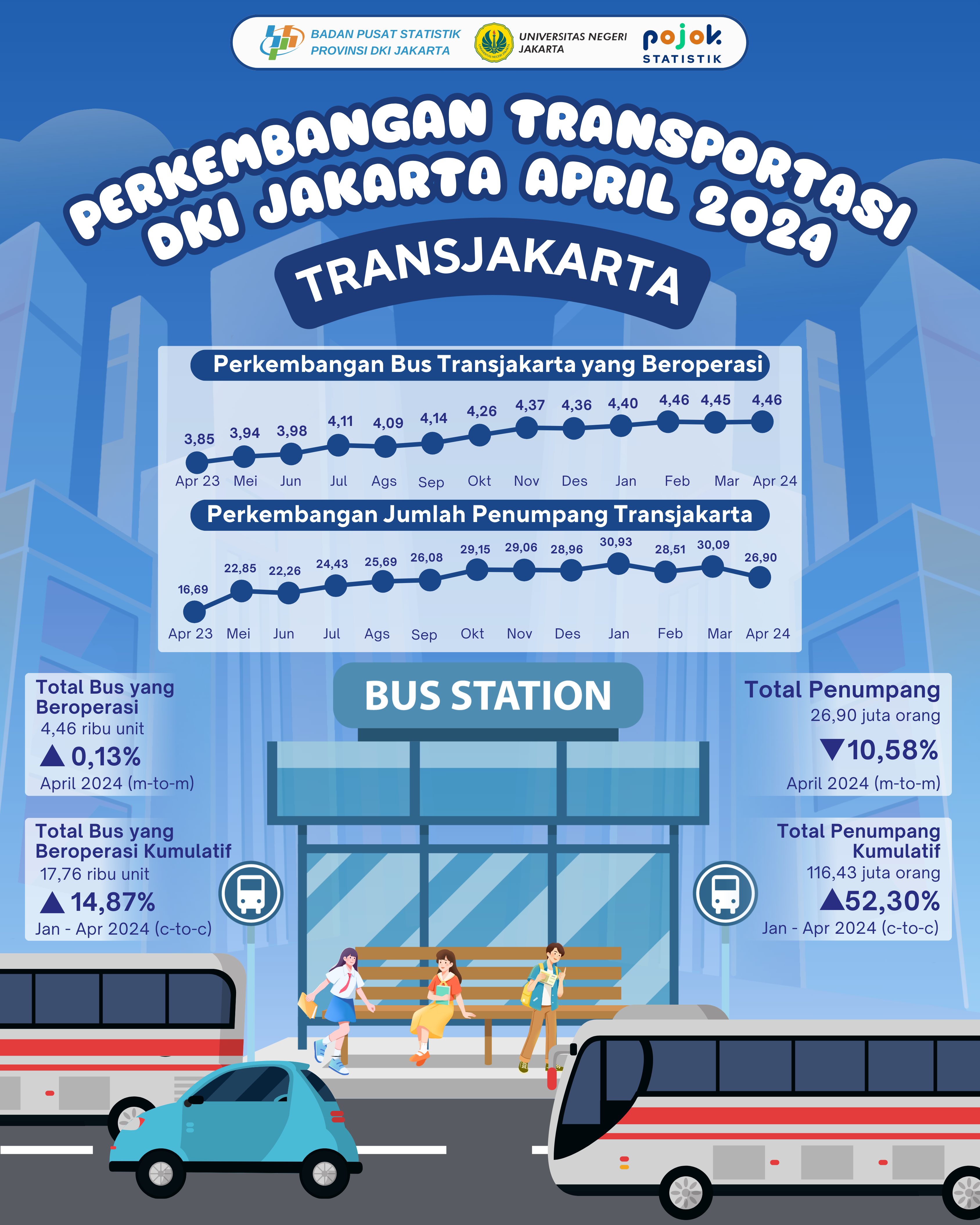 π April 2024, total penumpang Transjakarta turun 10,58% dibanding bulan sebelumnya, menjadi 26,90 juta orang. π§ Namun jumlah bus yang beroperasi tetap stabil di angka...