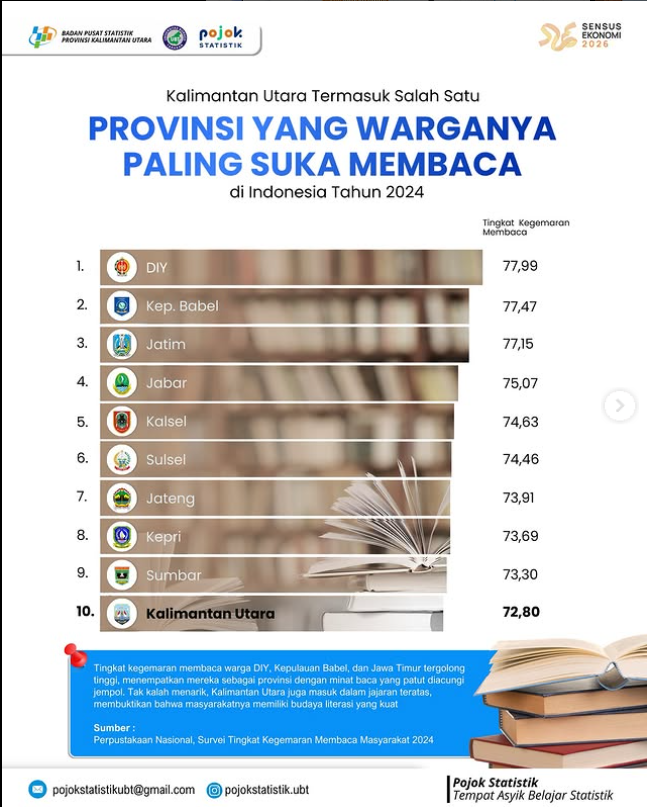 📚 Kalimantan Utara Masuk 10 Besar Provinsi Paling Suka Membaca! 📖✨ Tingkat kegemaran membaca masyarakat Kalimantan Utara mencapai 72,80, menempatkan provinsi ini dalam daftar 10...