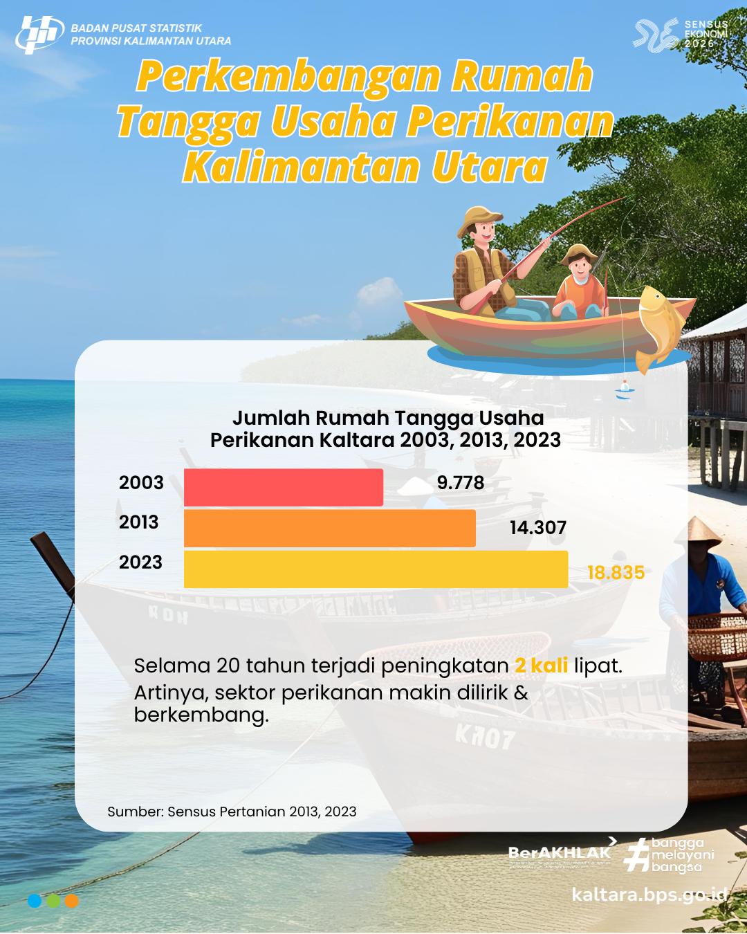 20 TAHUN USAHA PERIKANAN KALTARA Dalam 20 tahun, jumlah rumah tangga usaha perikanan di Kalimantan Utara naik dua kali lipat! Ingin tahu lebih banyak tentang...