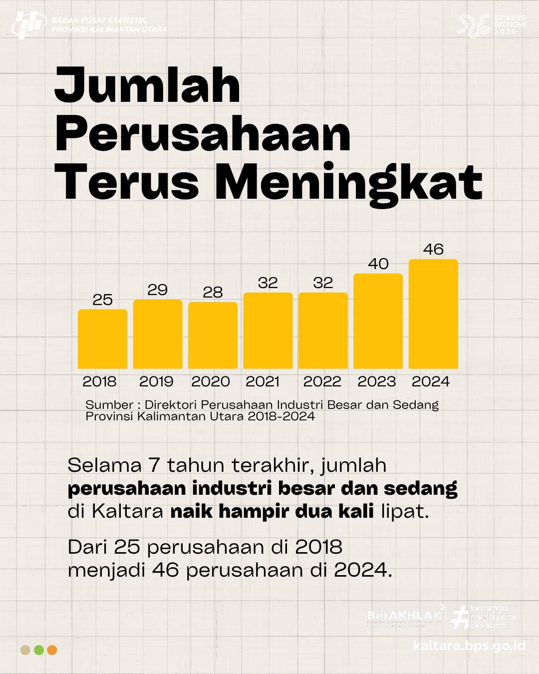 PERTUMBUHAN INDUSTRI MANUFAKTUR KALTARA Industri manufaktur di Kalimantan Utara makin menggeliat! Jumlah perusahaan besar dan sedang terus tumbuh, bahkan nyaris dua kali lipat dalam 7...