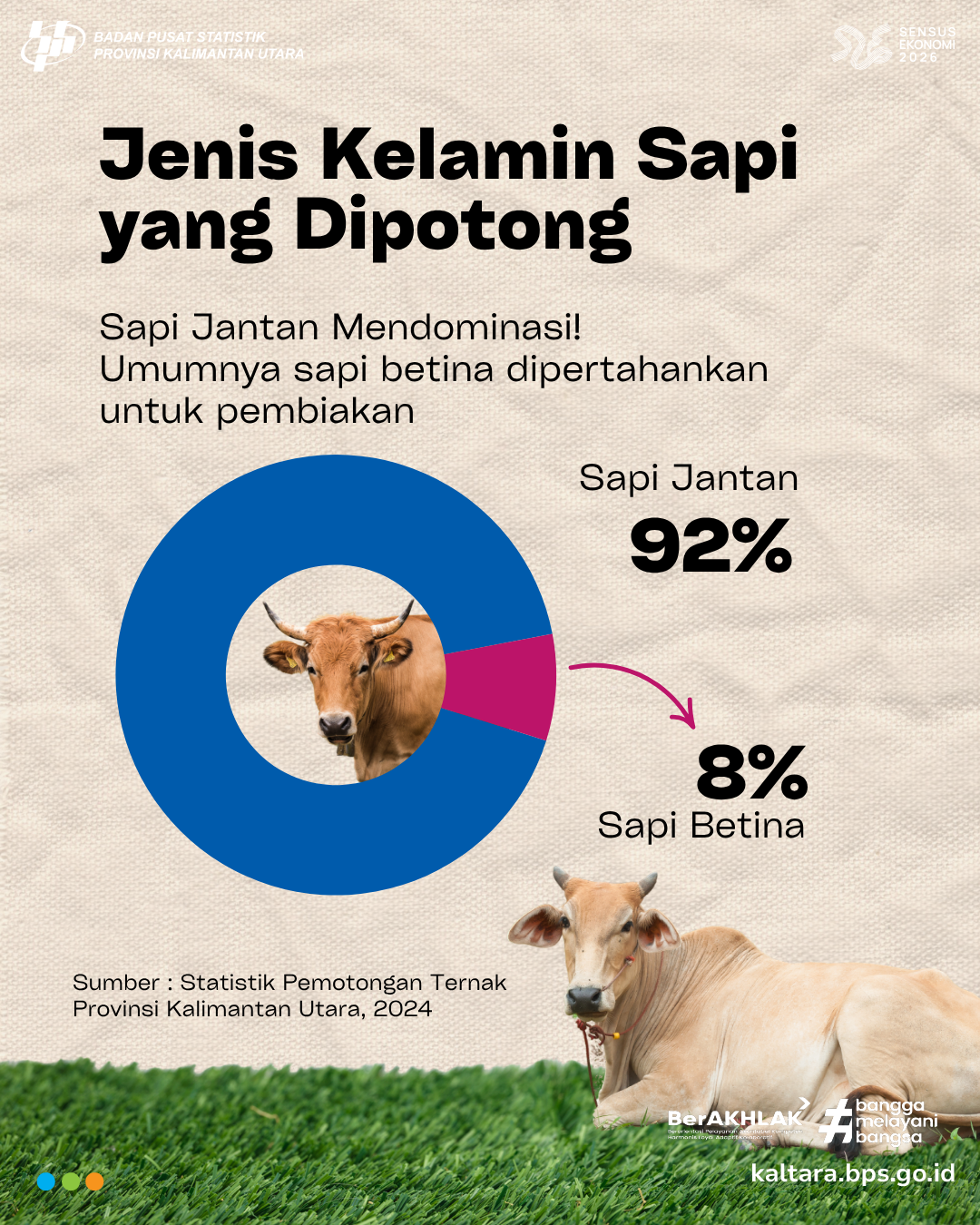 BERAPA SAPI YANG DIPOTONG DI TAHUN 2024? Halo #SahabatData 👋 Tahukah kamu? Sepanjang tahun 2024, ribuan ekor sapi dipotong di Kalimantan Utara, baik di RPH...