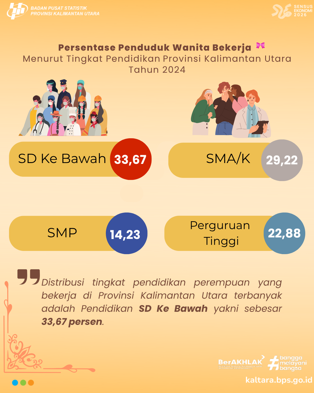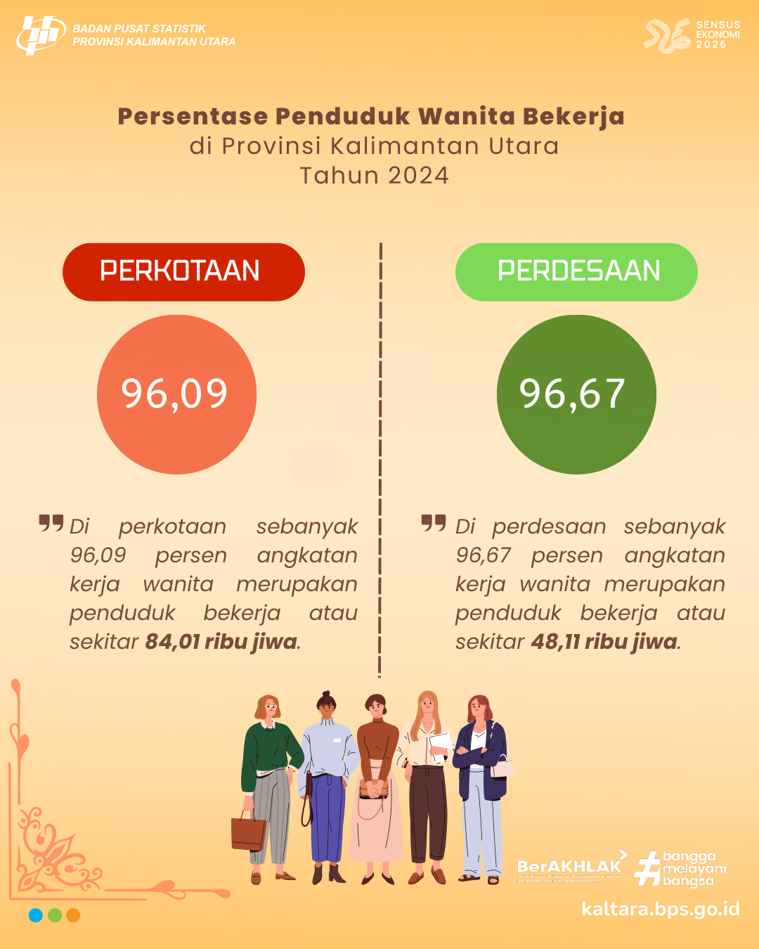 WANITA BEKERJA Berdasarkan hasil pendataan Survei Angkatan Kerja Nasional Agustus 2024, terdapat 137,21 ribu penduduk perempuan di Provinsi Kalimantan Utara yang termasuk ke dalam kelompok...