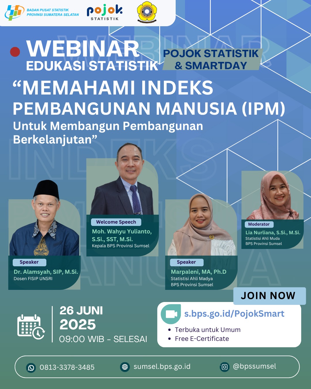 Kali ini BISTIK hadir dengan pembahasan podcast mengenai apa itu Pojok Statistik Universitas Sriwijaya bersama Kepala BPS Provinsi Sumatera Selatan, Bapak Muhammad Wahyu Yulianto, S.Si.,...
