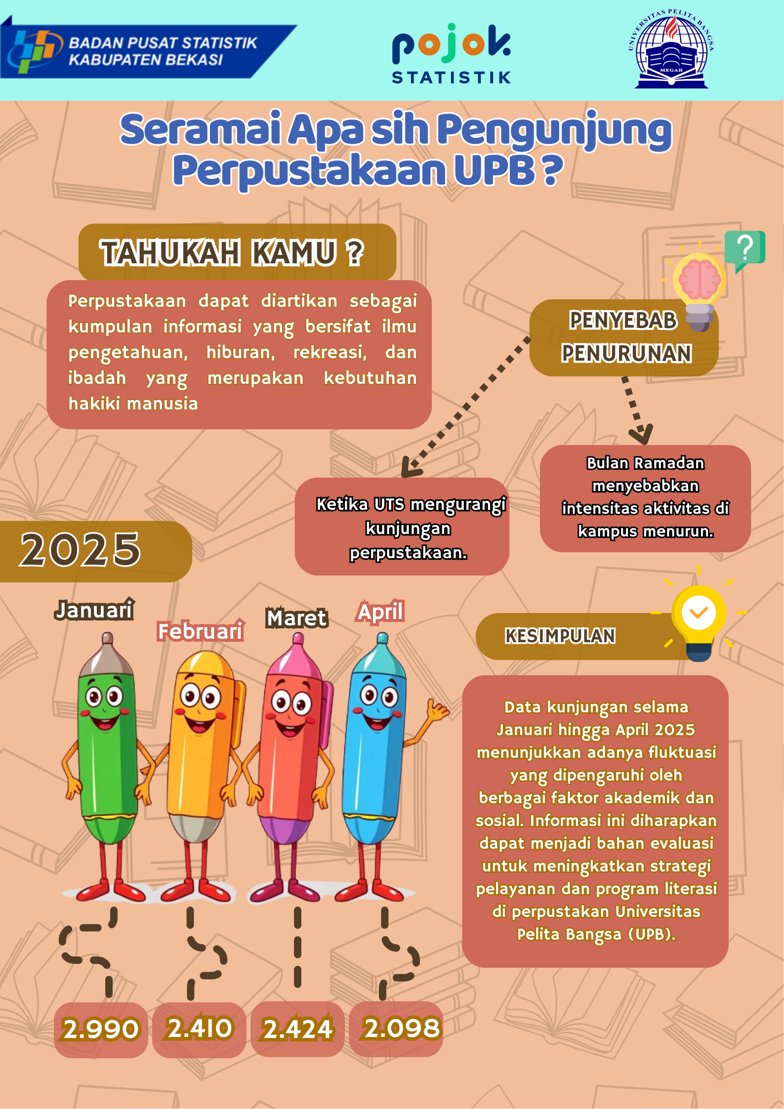 Halo Sobat Data! Kalian tahu nggak? Jumlah pengunjung Perpustakaan Universitas Pelita Bangsa (UPB) dari Januari sampai April 2025 terus mengalami penurunan tiap bulannya, lho! 😯...