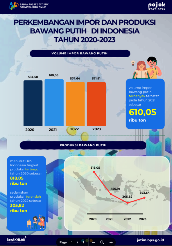 Perkembangan Impor dan Produksi Bawang Putih di Indonesia Tahun 2020-2023