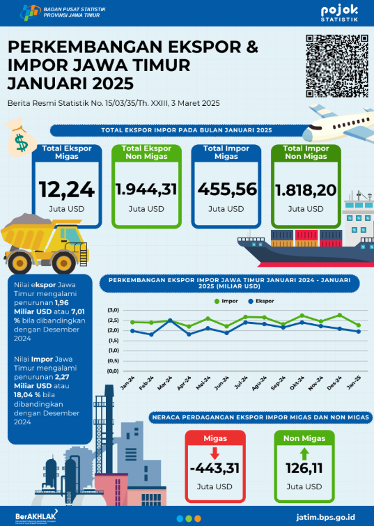 Perkembangan Ekspor dan Impor Jawa Timur Januari 2025