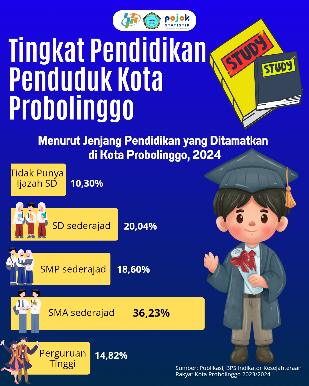 Tingkat Pendidikan Kota Probolinggo Menurut Jenjang Pendidikan yang Ditamatkan 2024