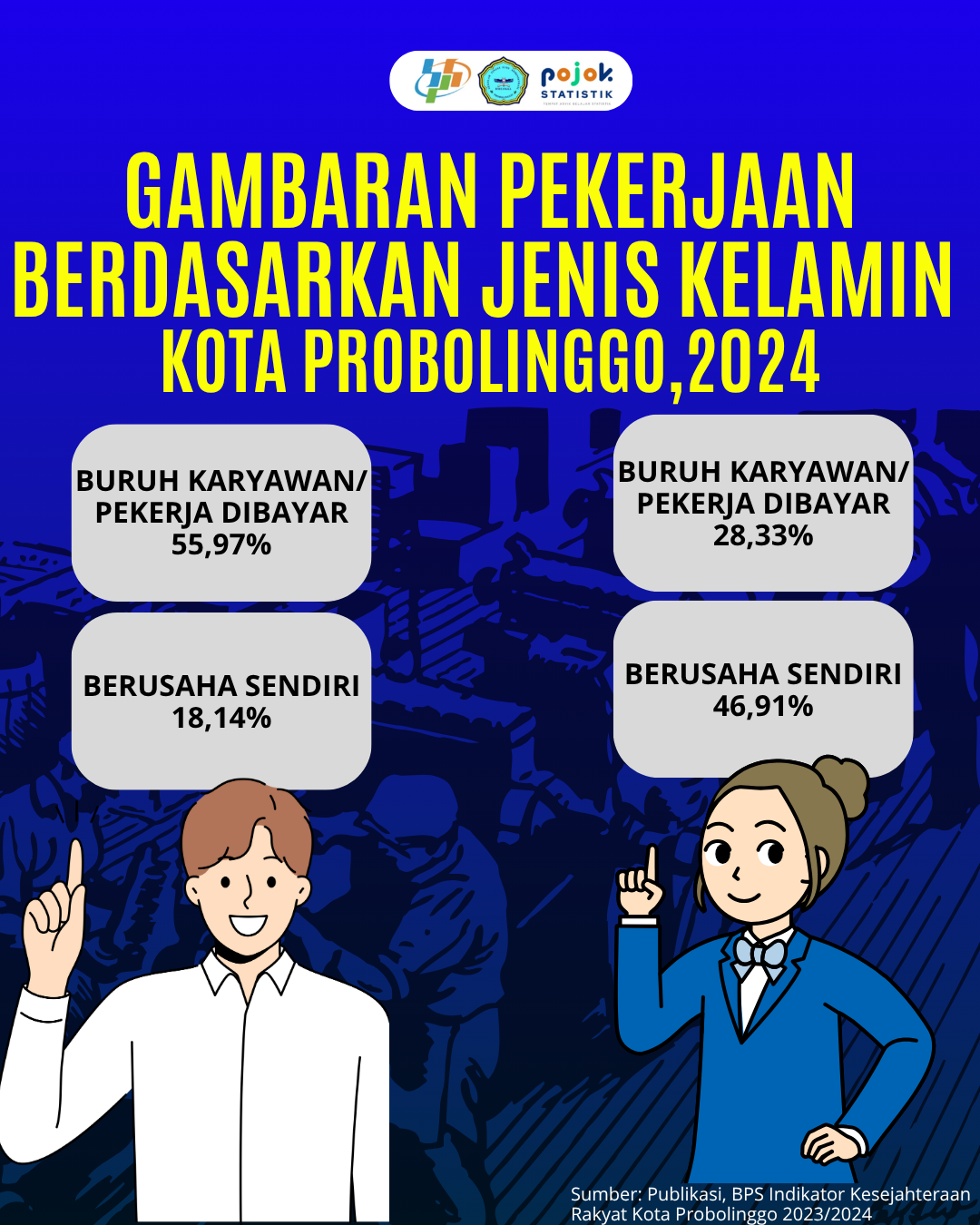 Gambaran Pekerjaan menurut jenis kelamin, di Kota Problingoo 2024