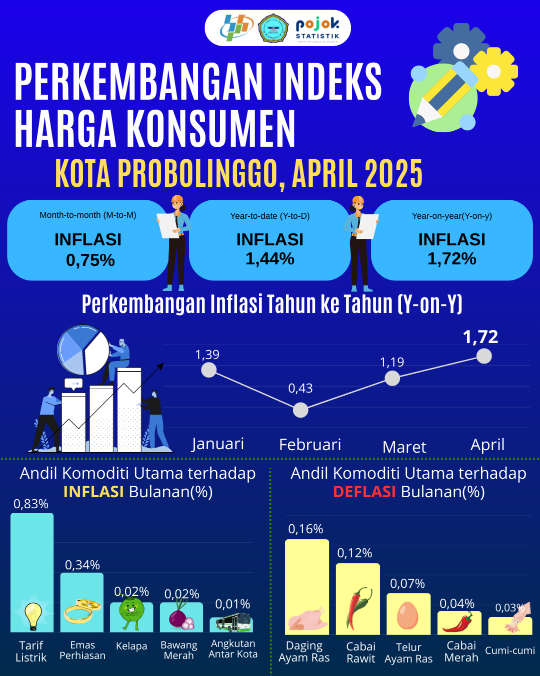 Pada April 2025 terjadi inflasi year on year (y-on-y) Kota Probolinggo sebesar 1,72 persen