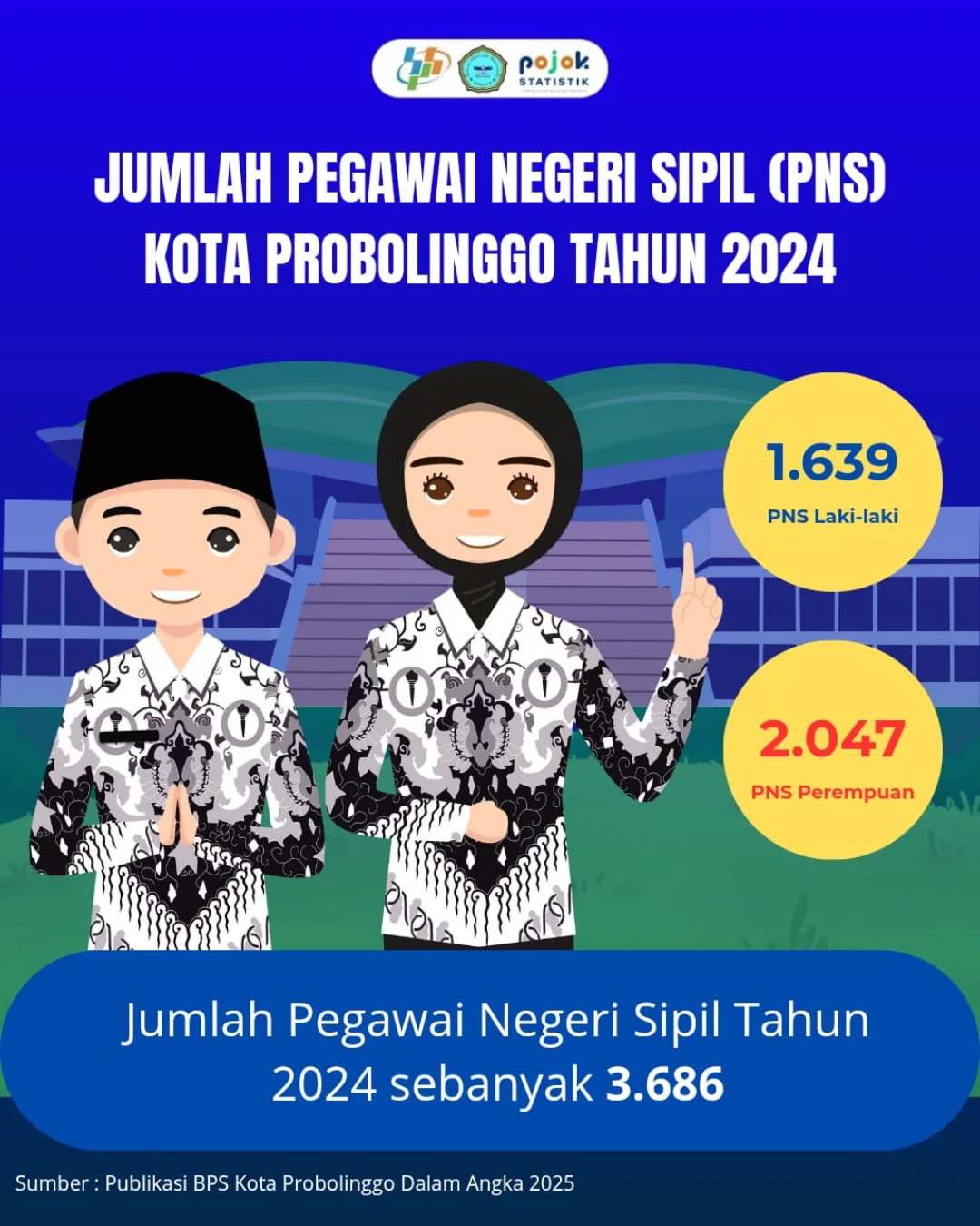 Jumlah Pegawai Negeri Sipil yang berada di lingkungan pemerintah Kota Probolinggo, sebanyak 3.172 orang terdiri dari 1.512 laki-laki dan 1.660 perempuan.