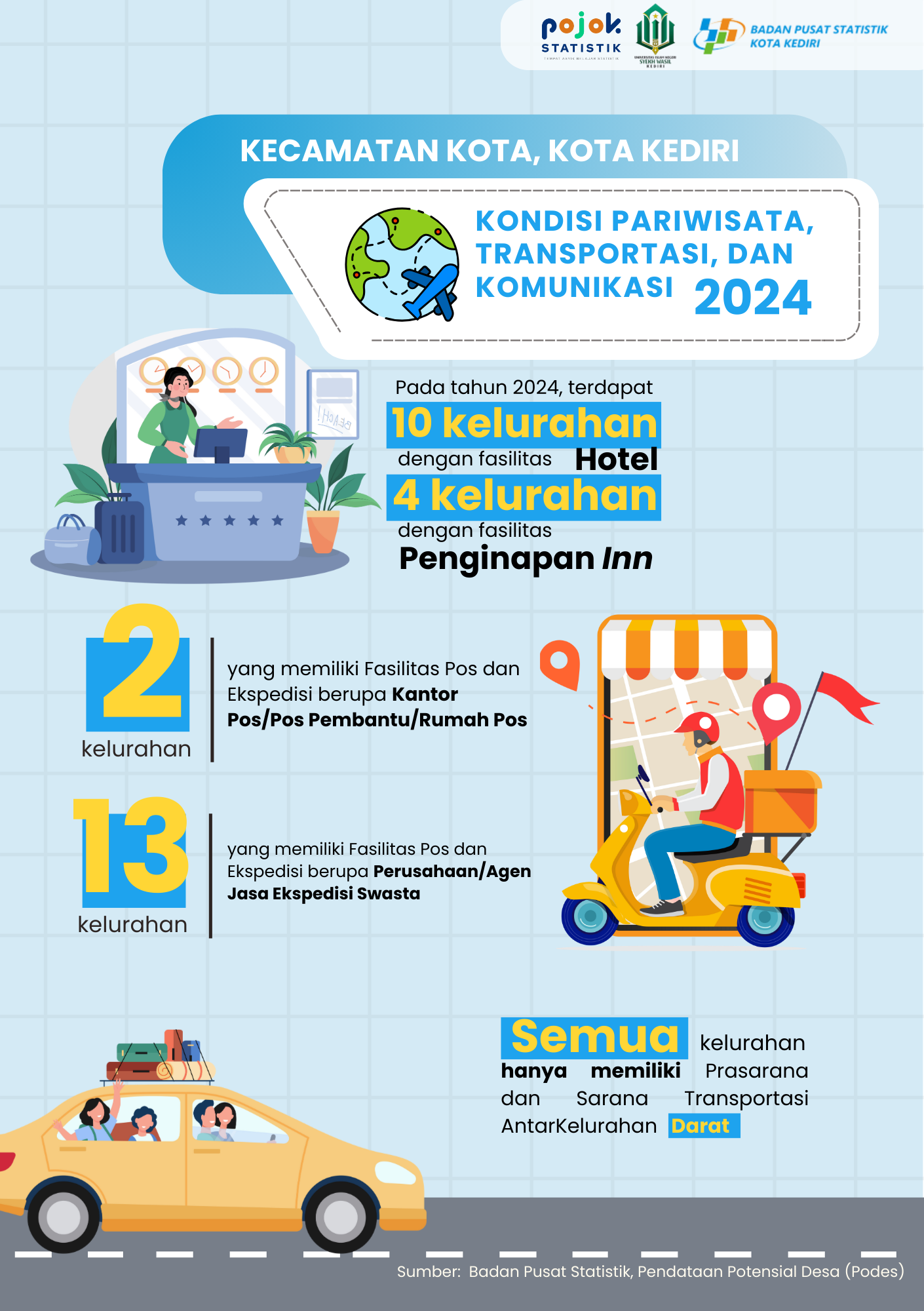 Kondisi Pariwisata, Transportasi, dan Komunikasi Kecamatan Kota, Kota Kediri 2024