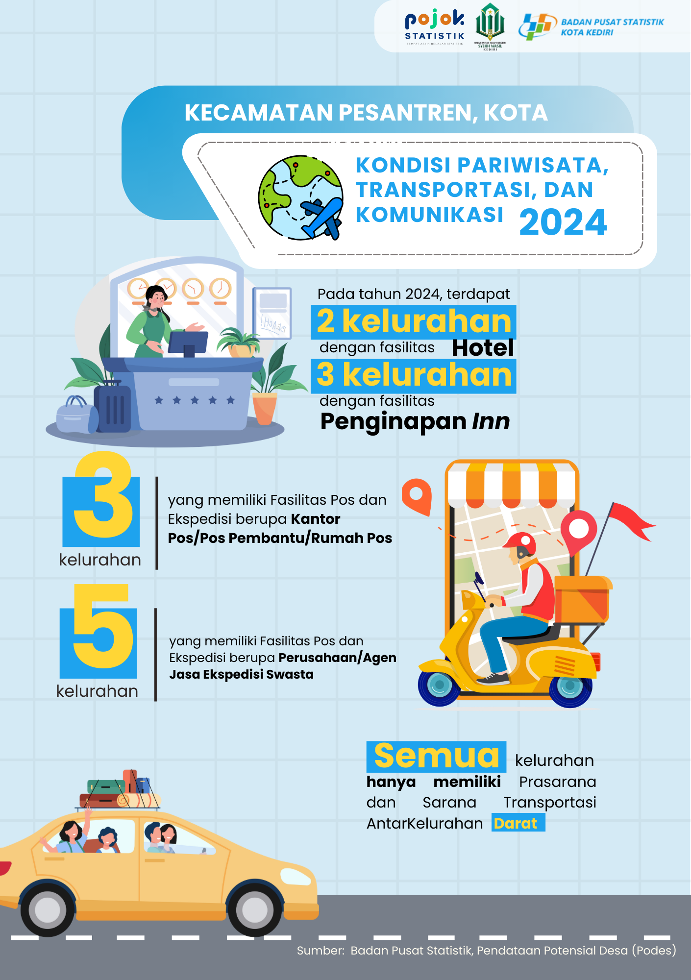 Kondisi Pariwisata, Transportasi, dan Komunikasi Kecamatan Pesantren, Kota Kediri 2024