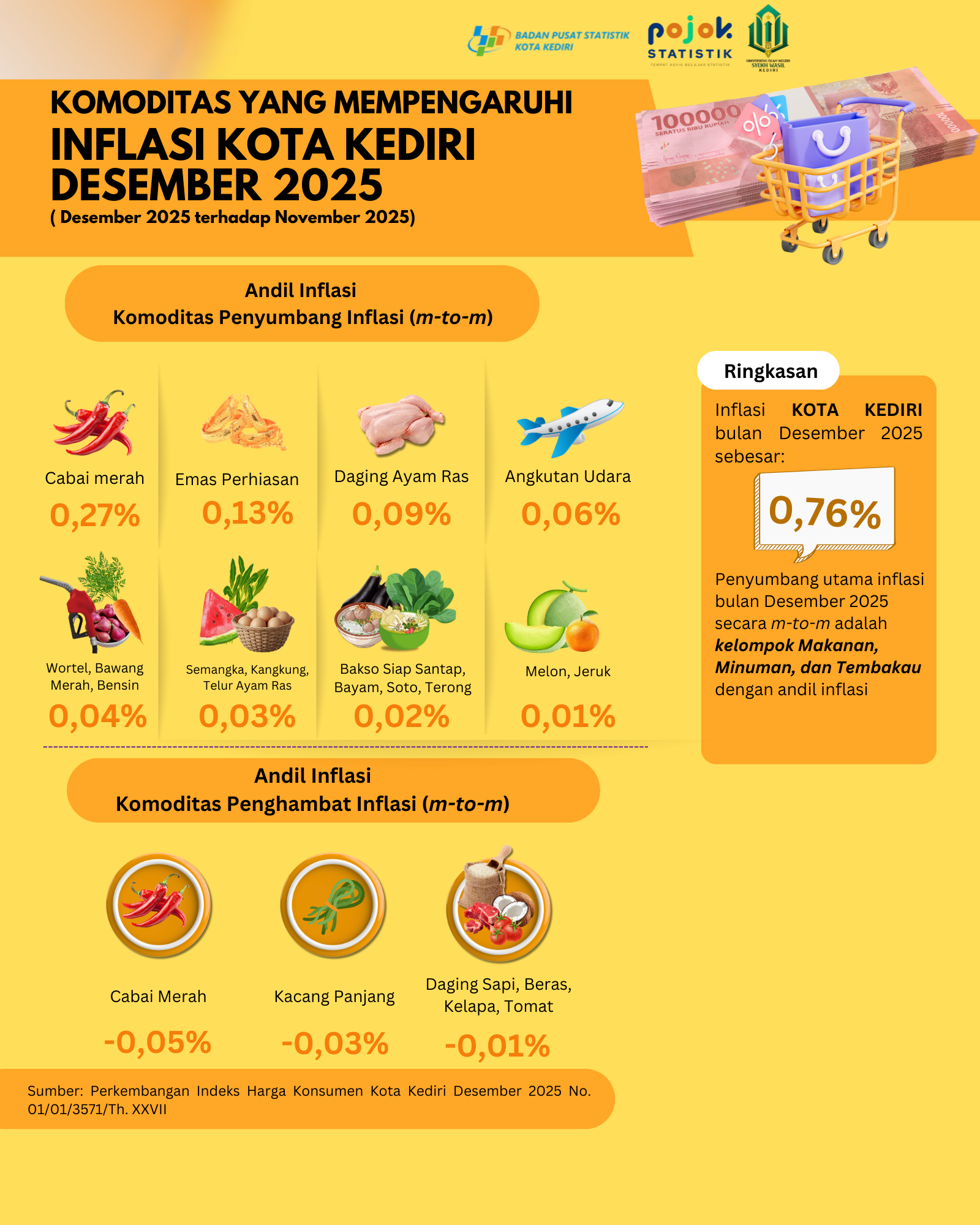 Rilis Angka Inflasi Desember 2025 dan Tingkat Penghunian Kamar November 2025 Kota Kediri
