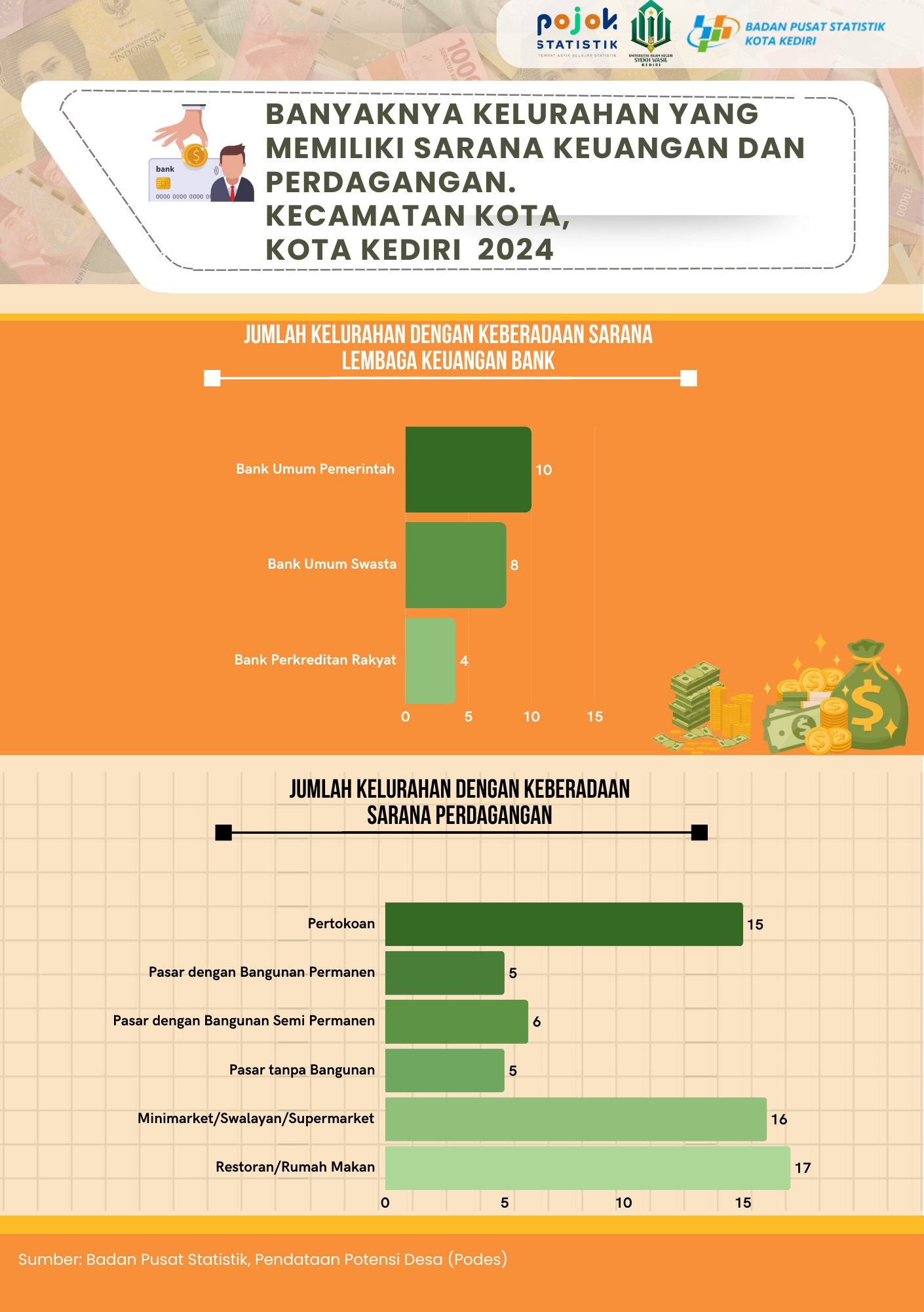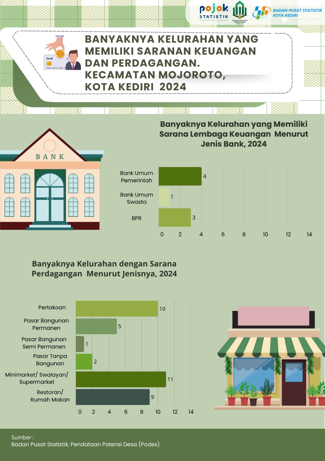 Banyaknya Kelurahan yang memiliki saranan keuangan dan perdagangan Kecamatan Mojoroto, Kota Kediri 2024