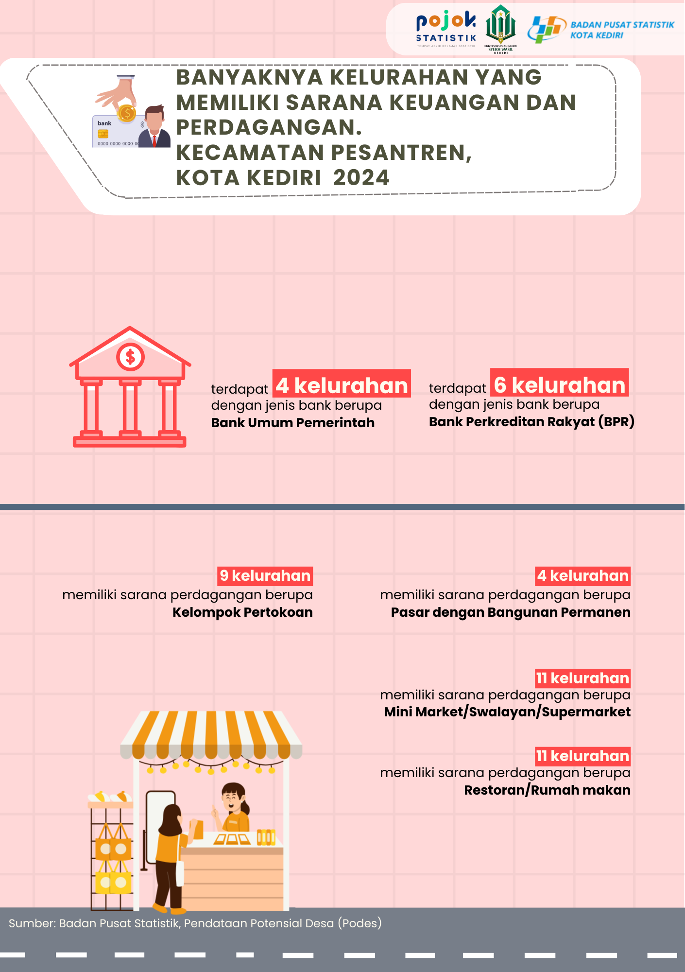 Banyaknya Kelurahan yang memiliki sarana keuangan dan perdagangan Kecamatan Pesantren, Kota Kediri 2024