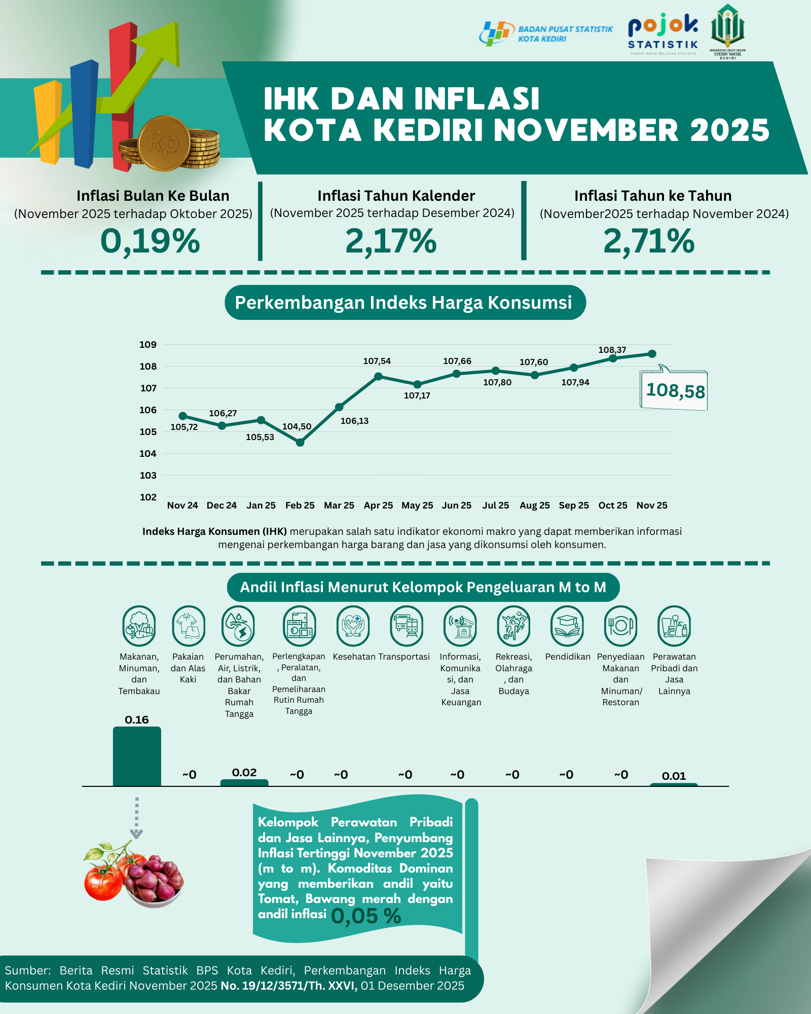 Perkembangan Indeks Harga Konsumen dan Inflasi Kota Kediri November 2025