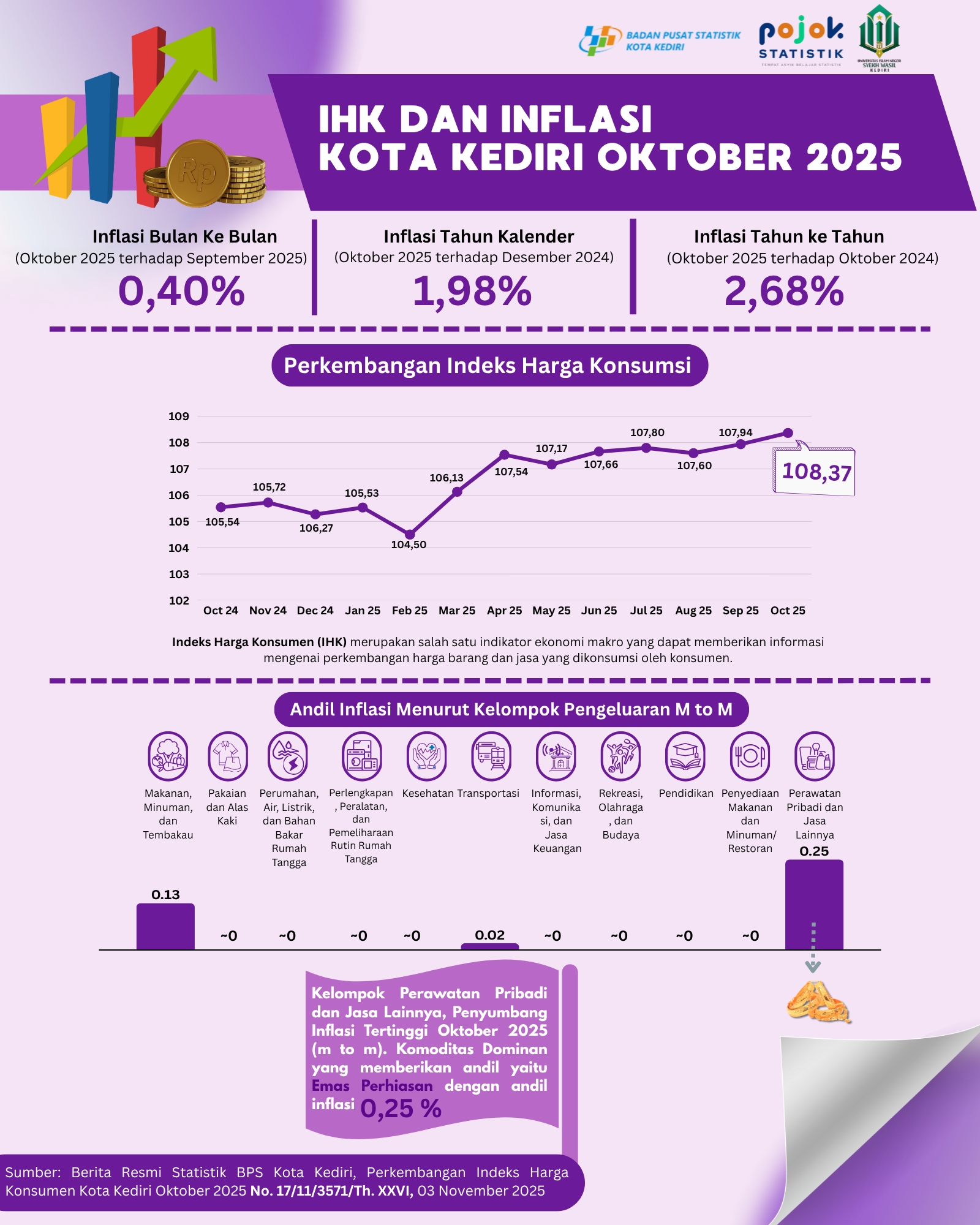 Perkembangan Indeks Harga Konsumen dan Inflasi Kota Kediri Oktober 2025