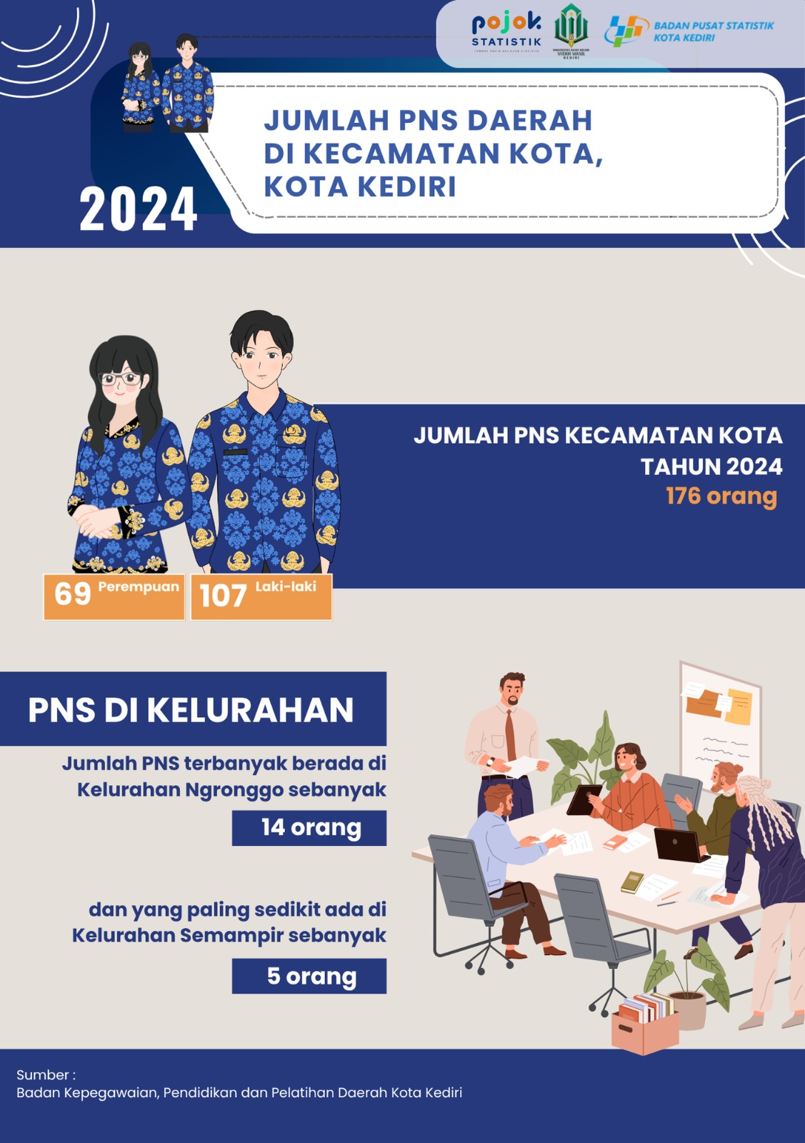 Pada Tahun 2024, jumlah PNS Daerah yang bertugas di Kecamatan Kota Sebanyak 176 Orang, dimana jumlah terbayak berada di Kelurahan Ngronggo