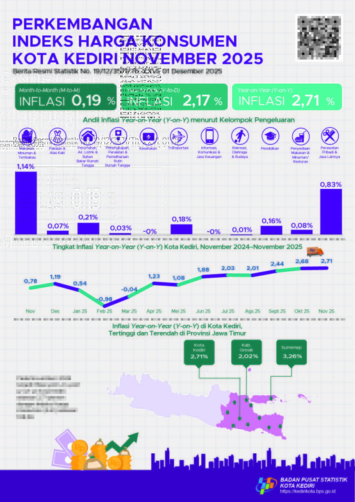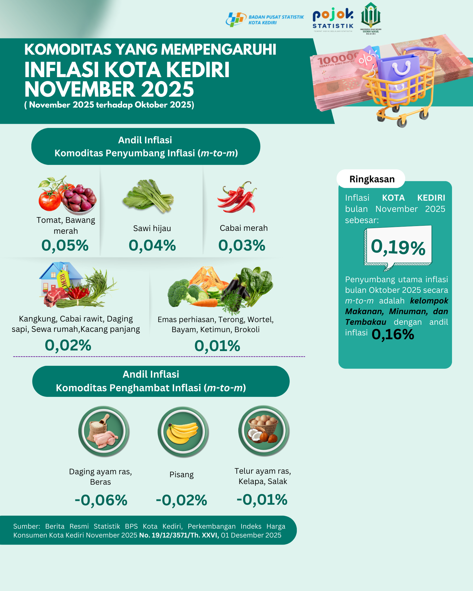 November 2025 terjadi inflasi year on year (y-on-y) Kota Kediri sebesar 2,71persen