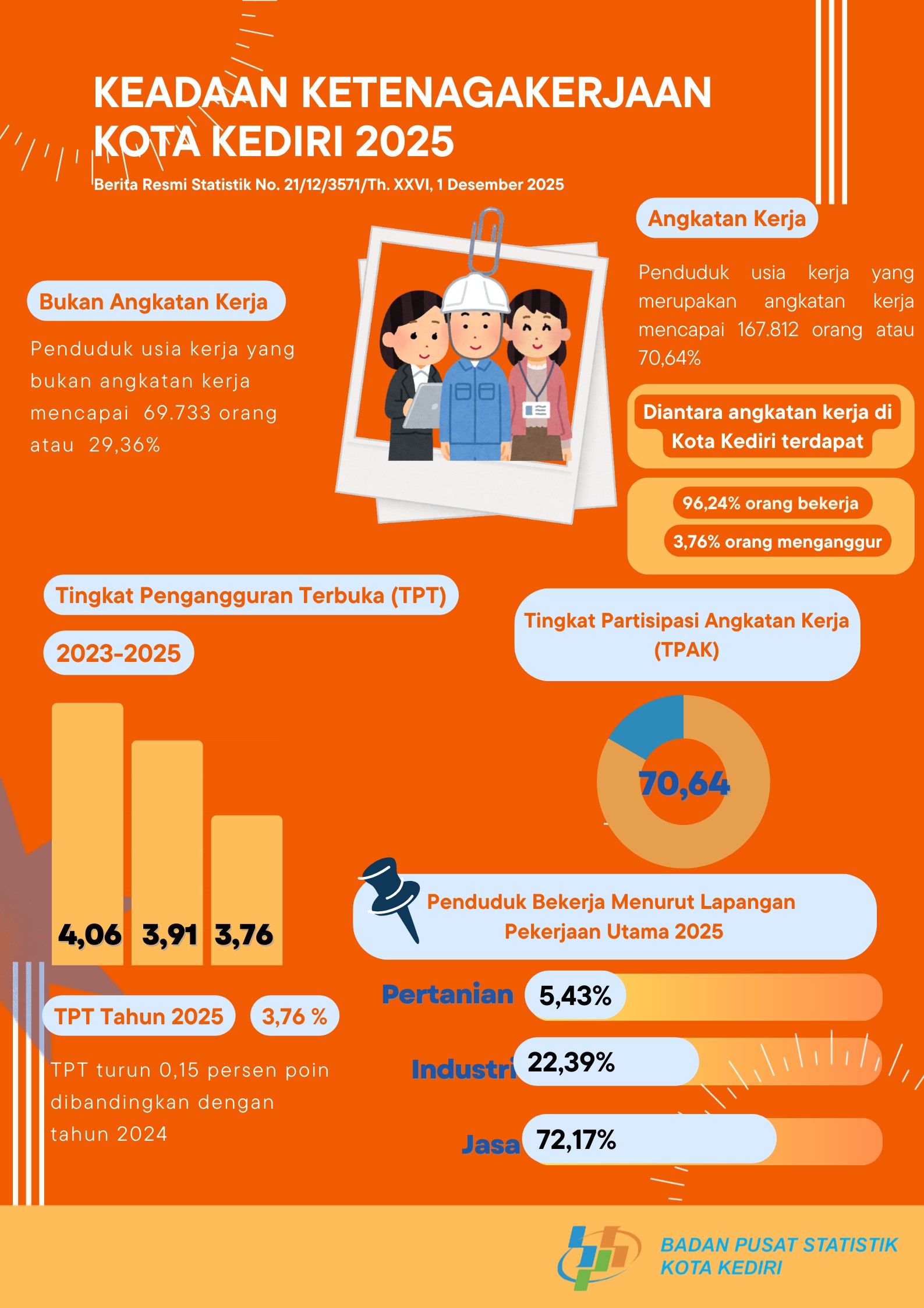 Tingkat Pengangguran Terbuka (TPT) Kota Kediri 2025 sebesar 3,76 persen