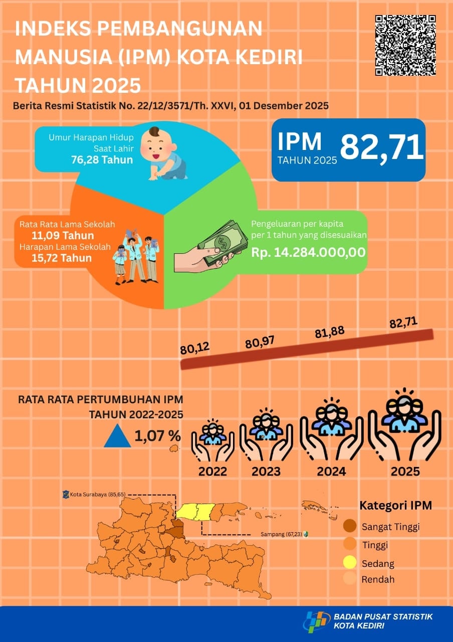 Indeks Pembangunan Manusia (IPM) Kota Kediri Tahun 2025 mencapai 82,71
