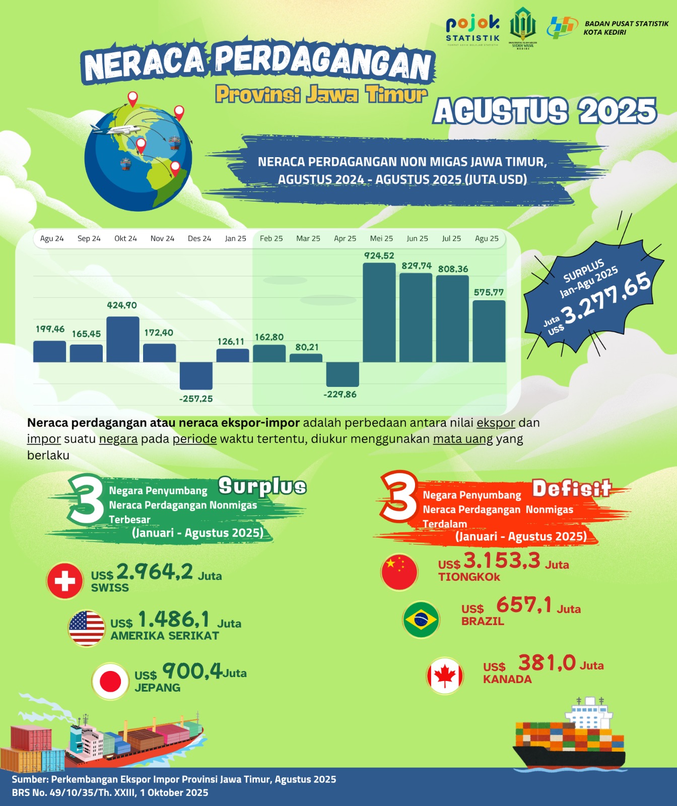 Neraca Perdagangan Non Migas Provinsi Jawa Timur Agustus 2025