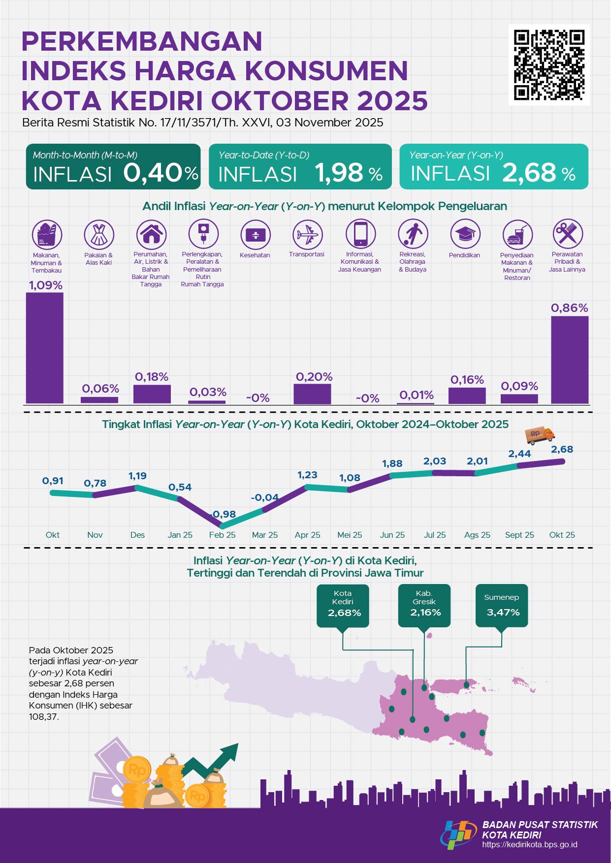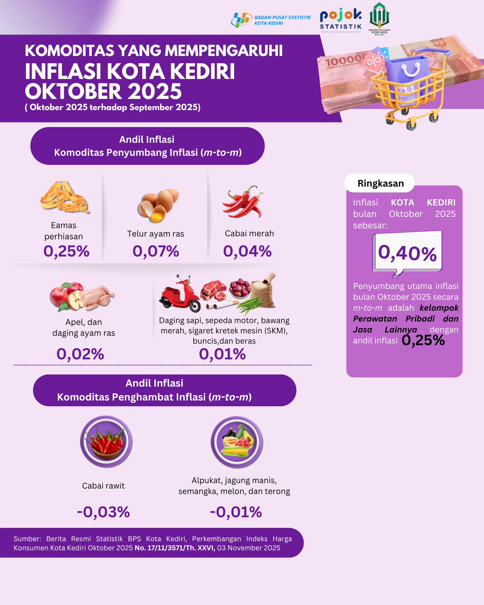 Perkembangan Indeks Harga Konsumen dan Inflasi Kota Kediri Oktober 2025