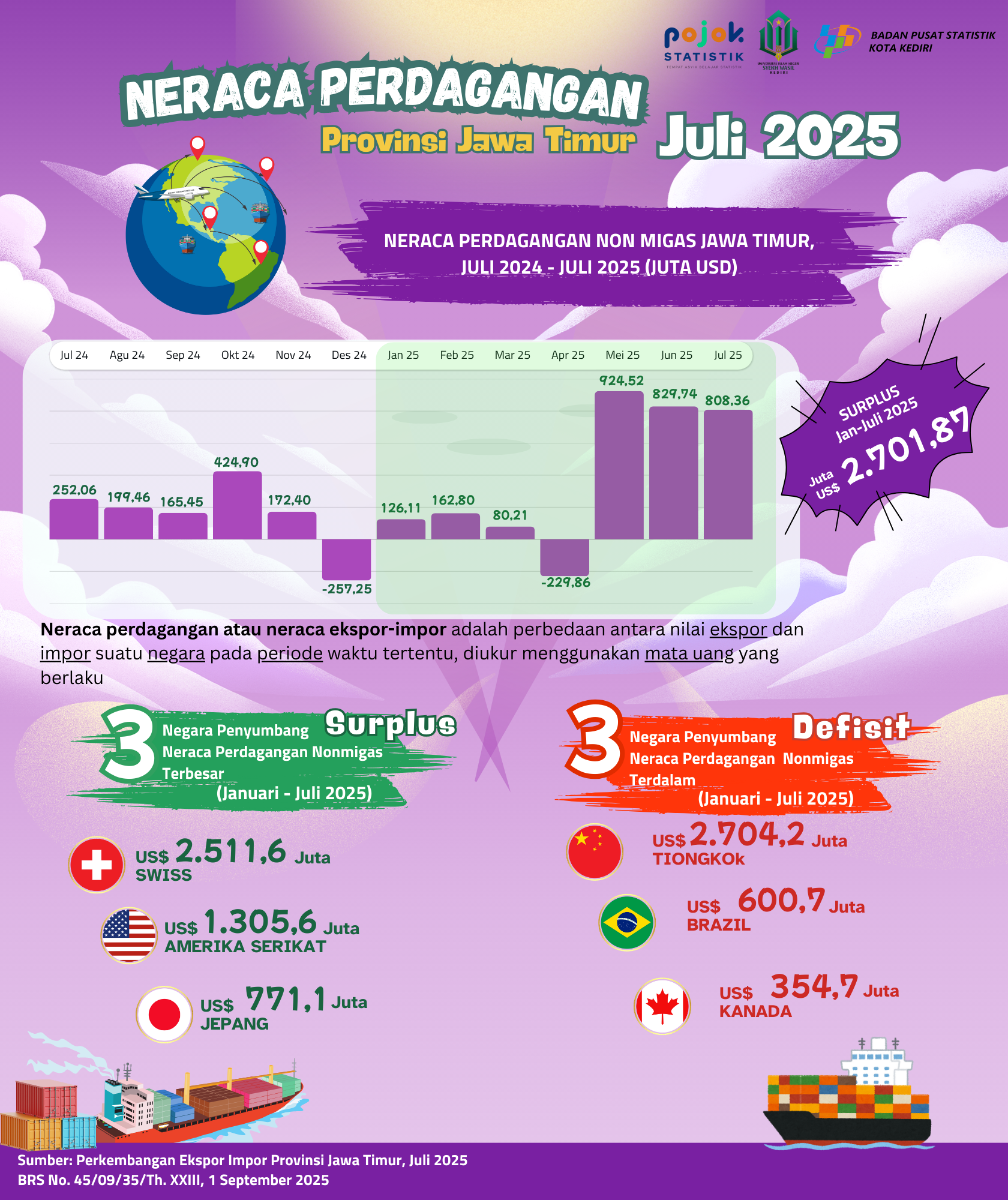 Neraca Perdagangan Non Migas Provinsi Jawa Timur Juli 2025