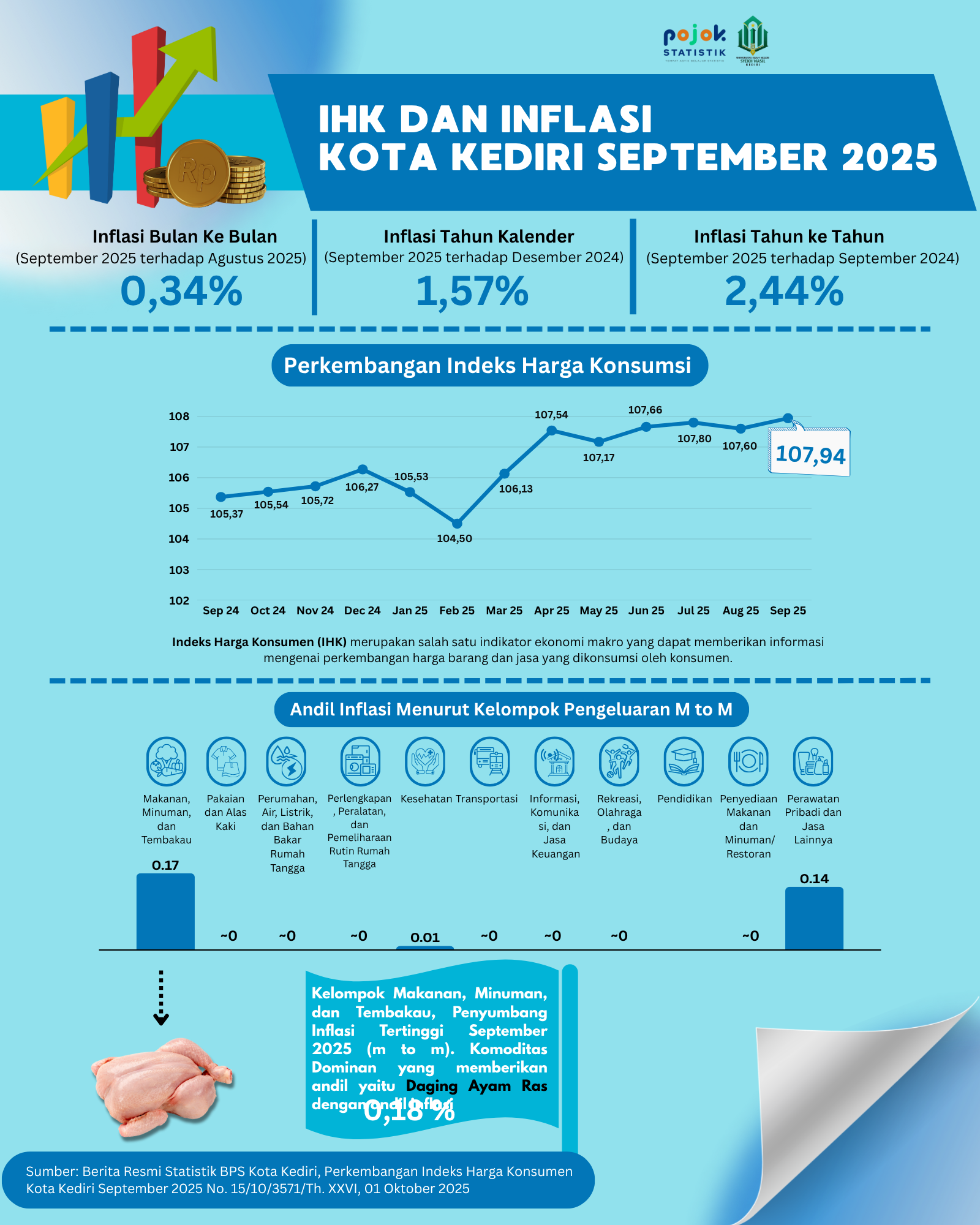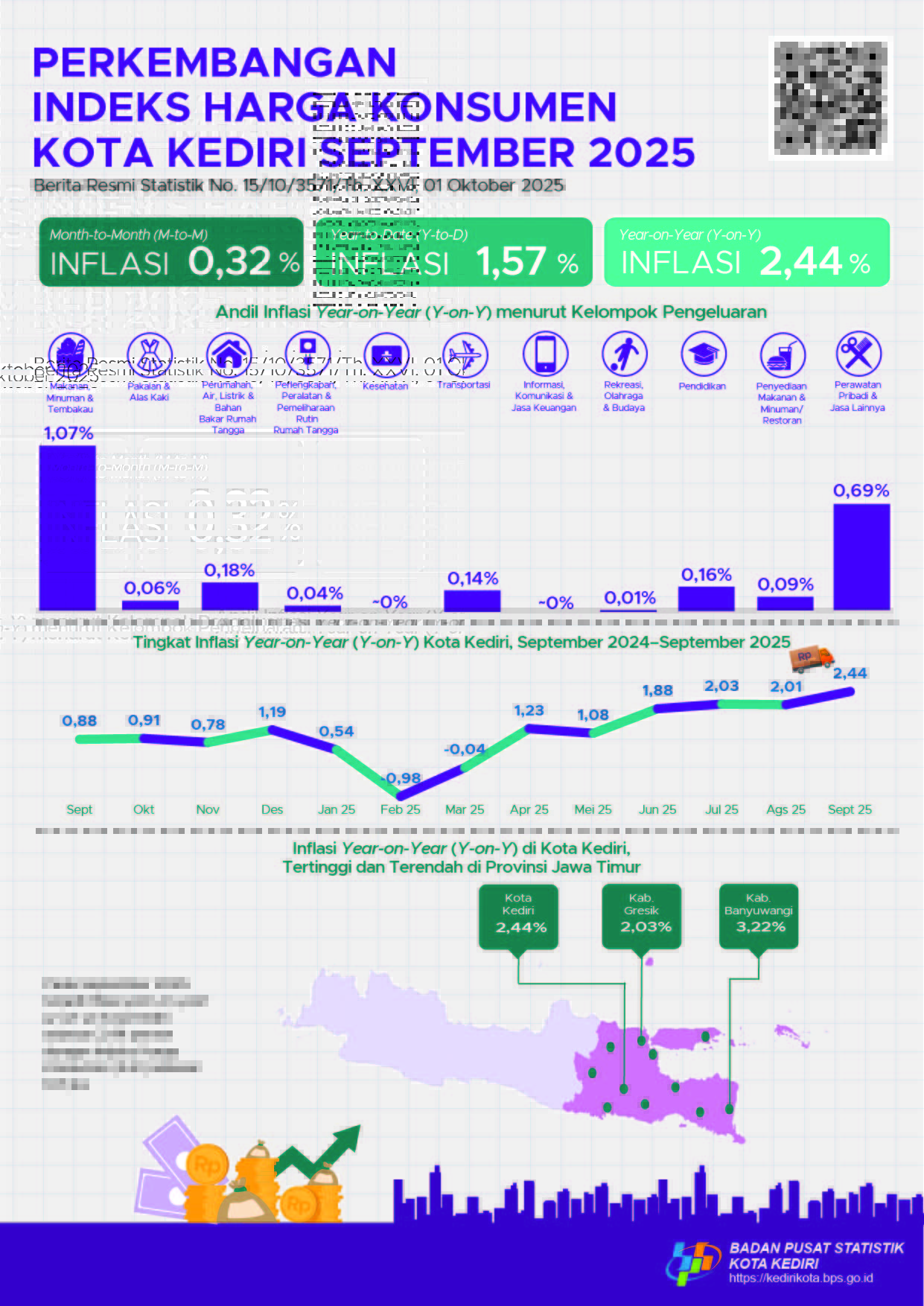 Inflasi Year on Year (y-on-y) September 2025 Kota Kediri sebesar 2,44 persen