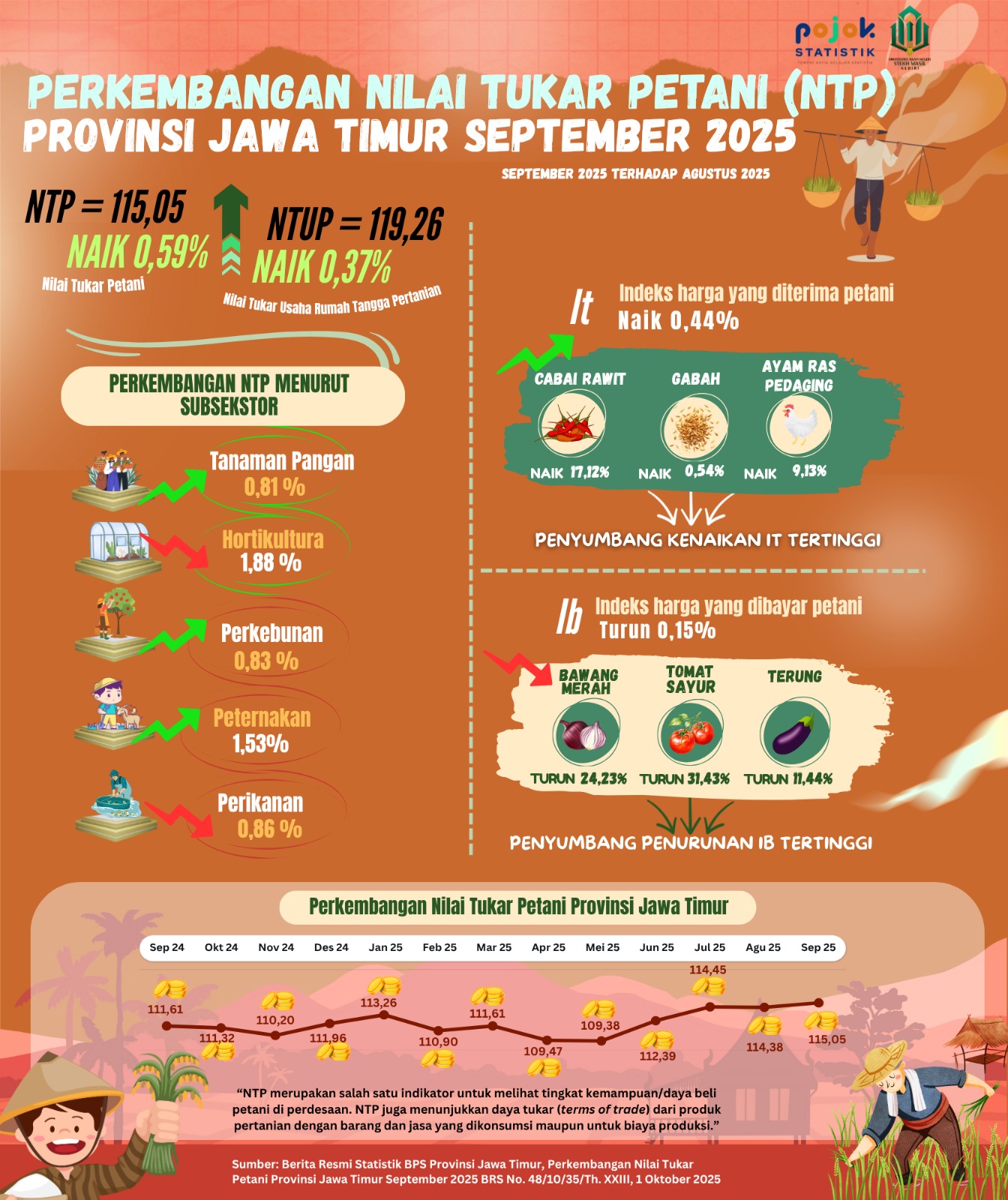 Perkembangan Nilai Tukar Petani (NTP) Provinsi Jawa Timur September 2025