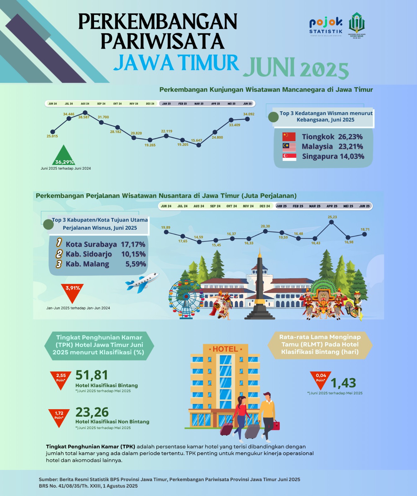 Dari data wisatawan mancanegara selama bulan Juni 2025, dar sebanyak 34 ribu kunjungan, 26,23 persen berasal dari negara Tiongkok